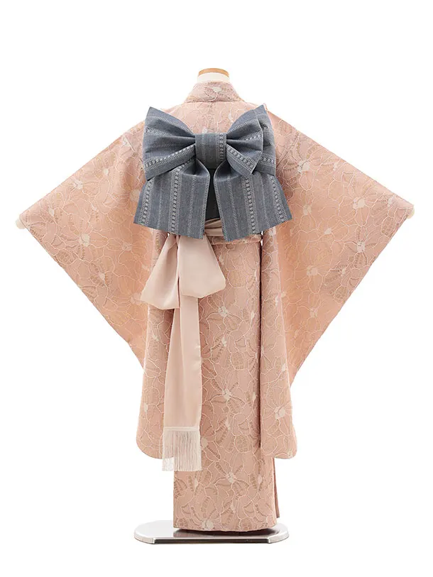 七五三(7歳結び帯)Y239 ラフィネココ ピンクベージュフラワーレース