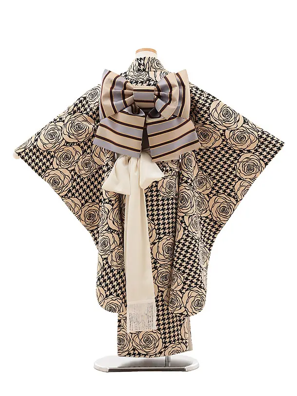 七五三(7歳結び帯)Y245 ラフィネココ ベージュ千鳥バラ