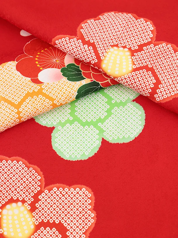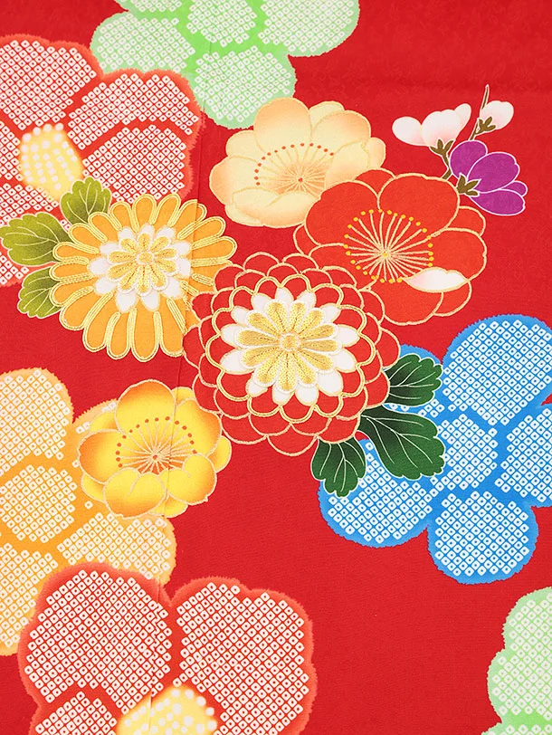 七五三(7歳女の子袋帯)Y253【正絹】赤地 金彩菊に梅椿
