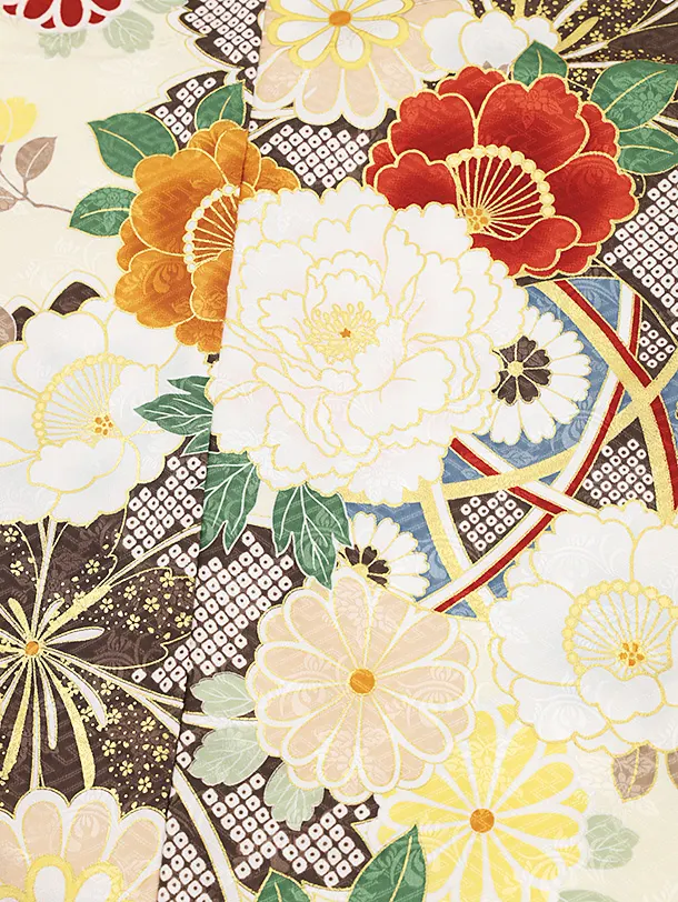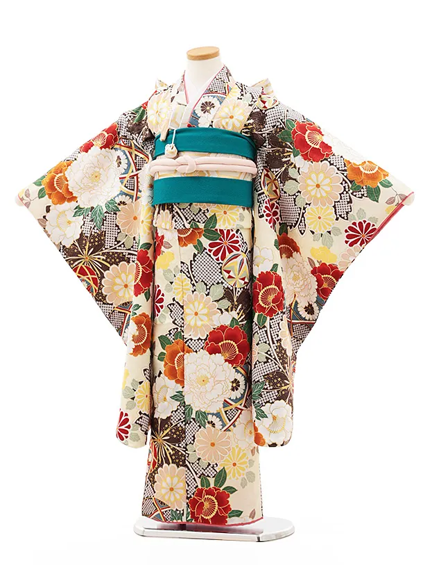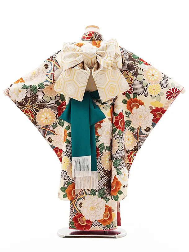 七五三(7歳結び帯)Y256 花わらべ クリーム古典柄