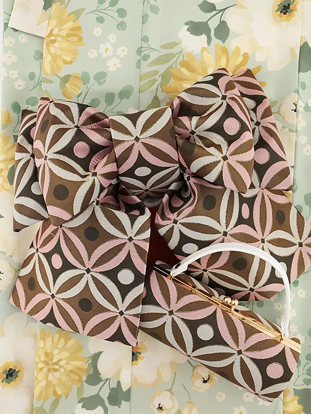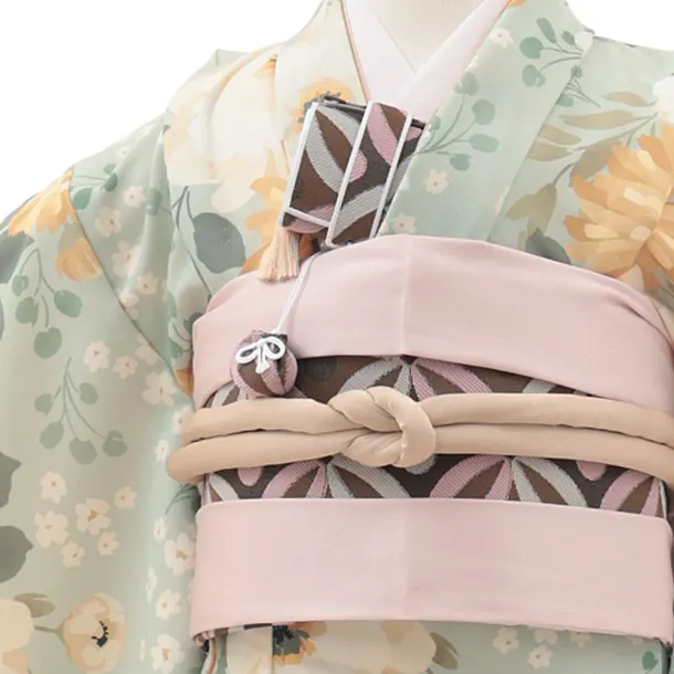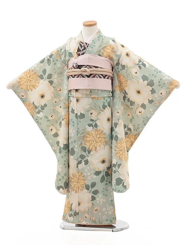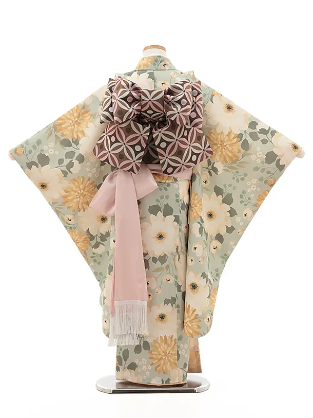 七五三(7歳結び帯)Y260 花わらべ グリーンレトロフラワー