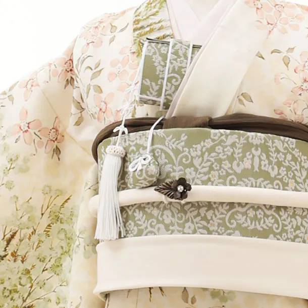 七五三(7歳結び帯)Y265 Sugar Kei クリーム色グリーンミモザ