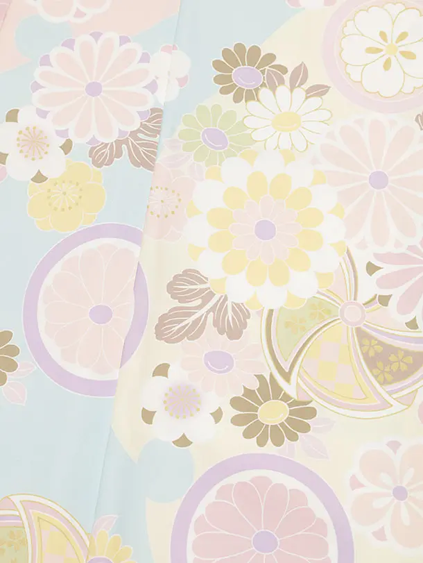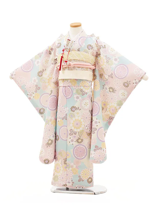 七五三(7歳結び帯)Y269 水色ピンク 丸紋 花