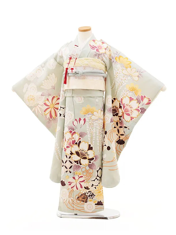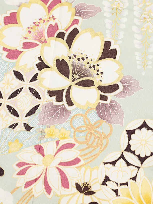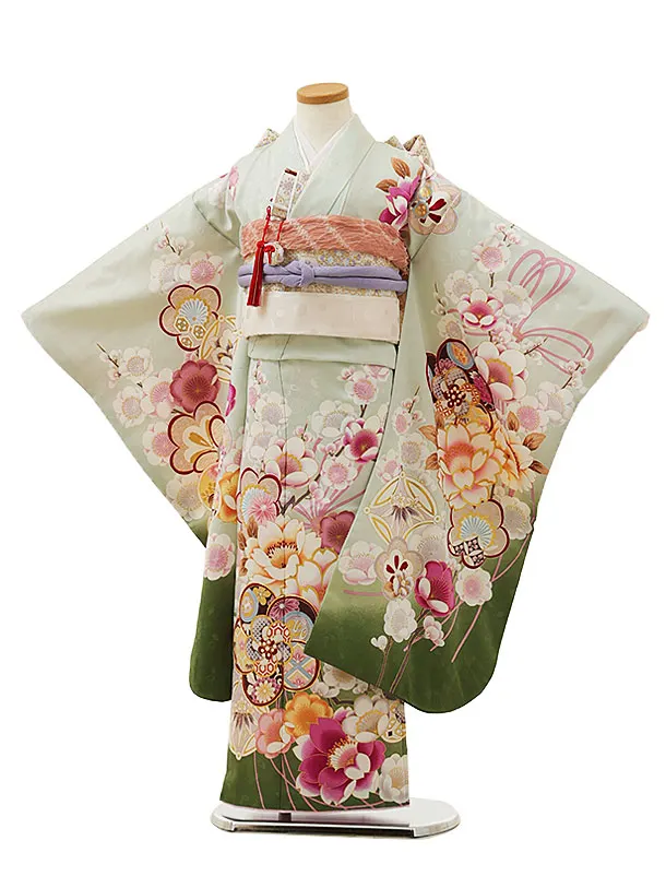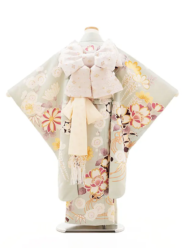 七五三(7歳結び帯)Y282 ペールグリーン 花づくし