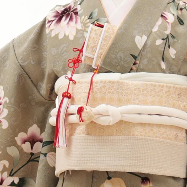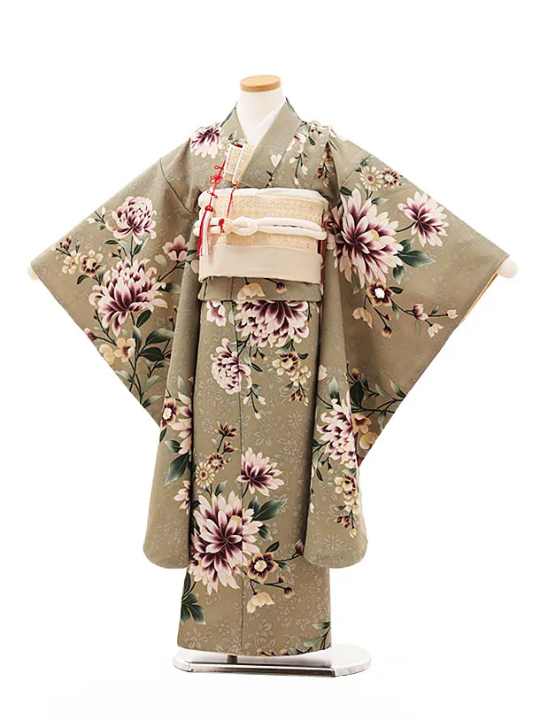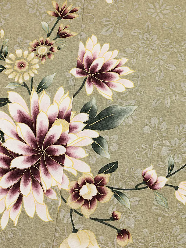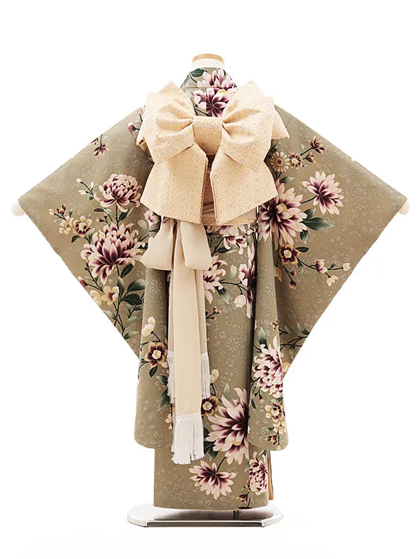 七五三(7歳結び帯)Y283 スモーキーグリーン 花