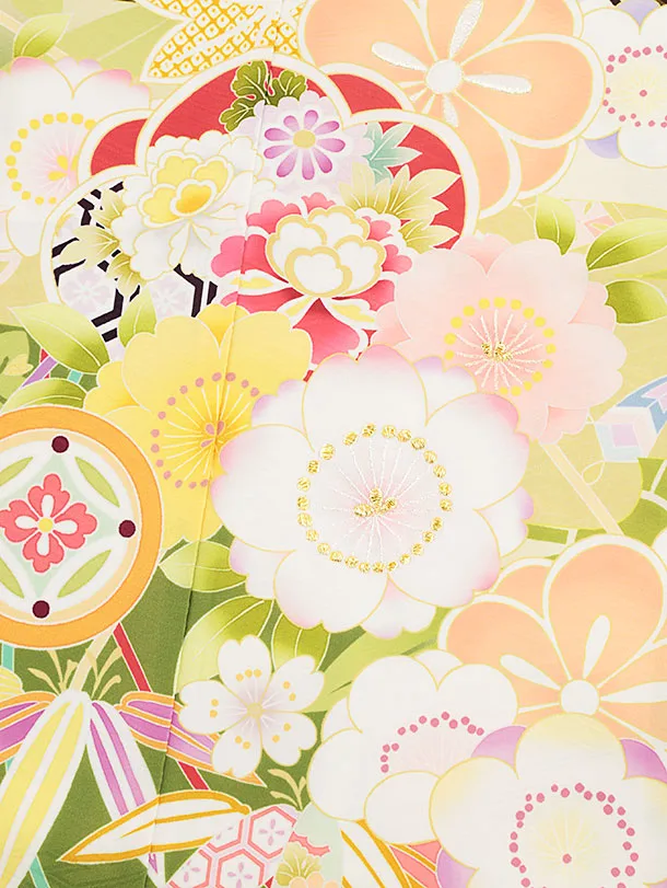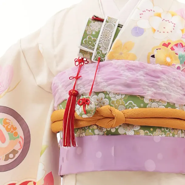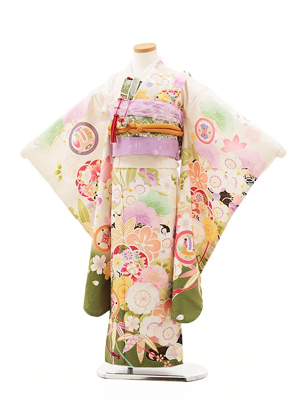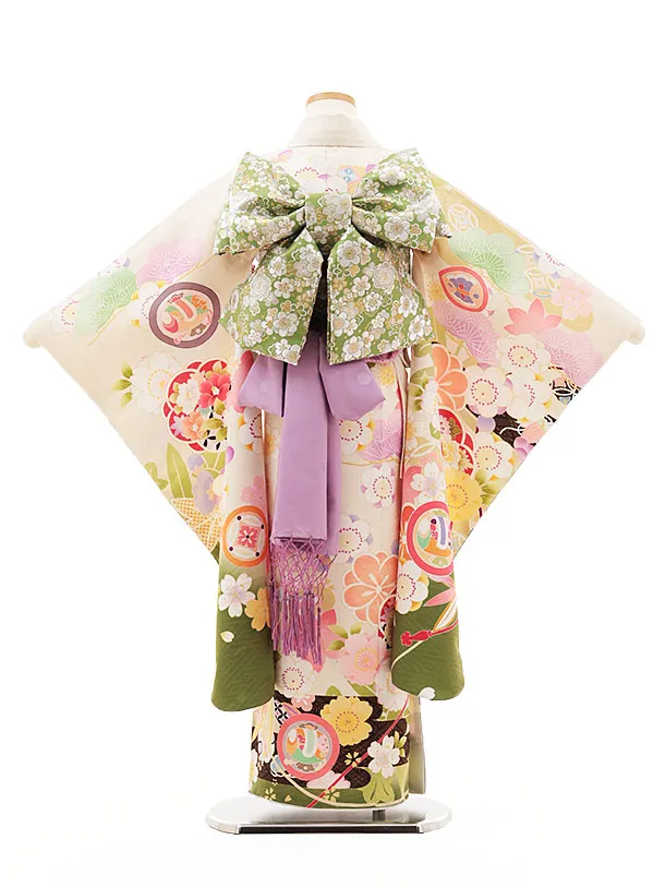 七五三(7歳結び帯)Y290 クリーム 裾緑 四季花