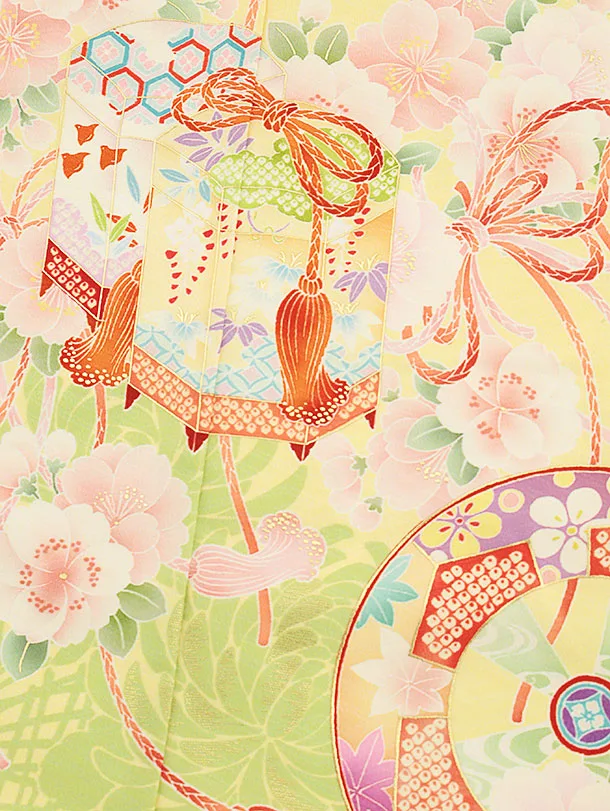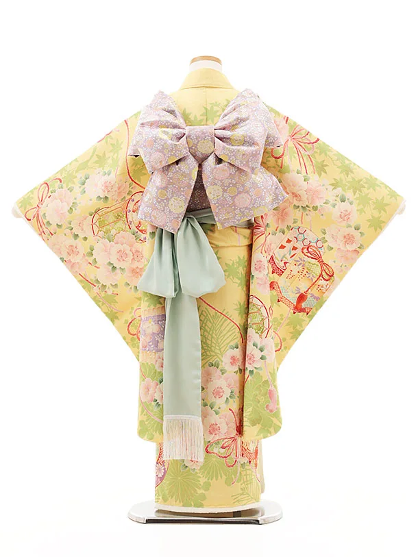 七五三(7歳結び帯)Y292 黄色 貝桶に花