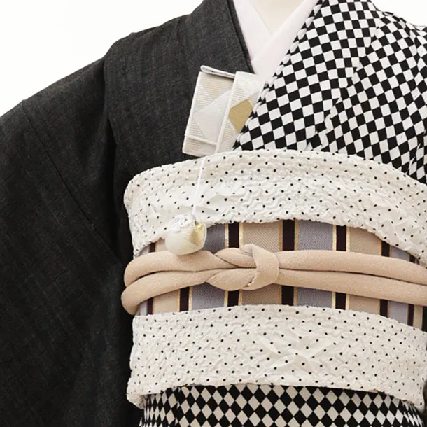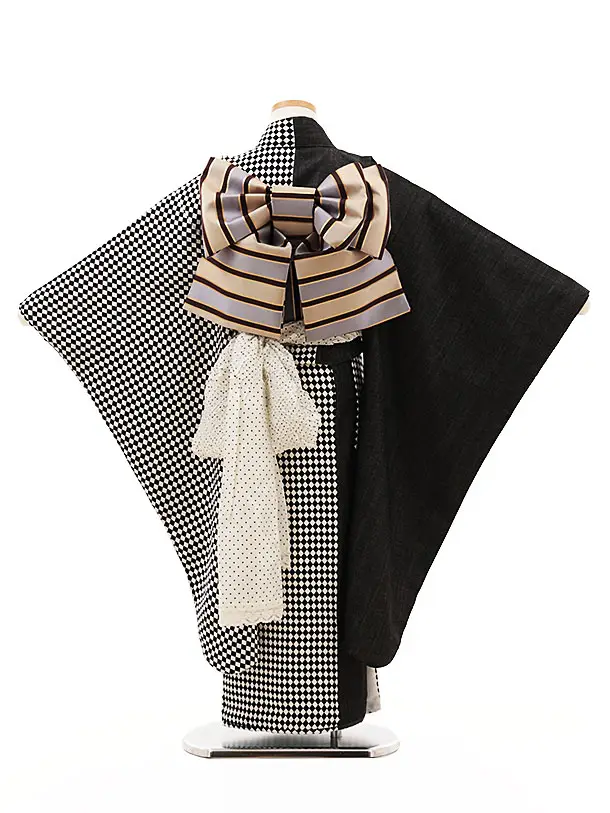 七五三(7歳結び帯)Y308 黒 白片身替り