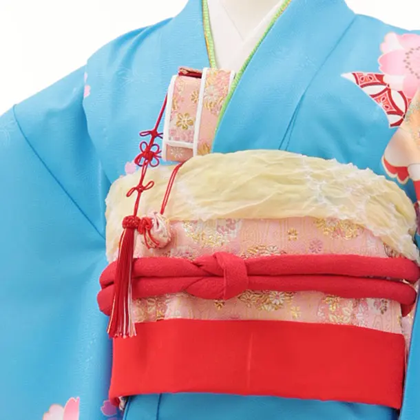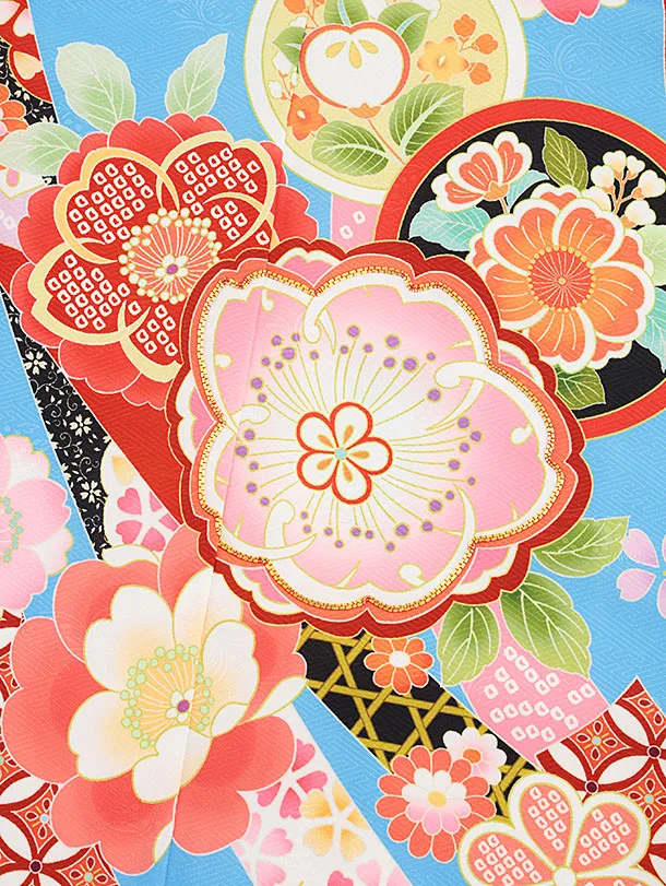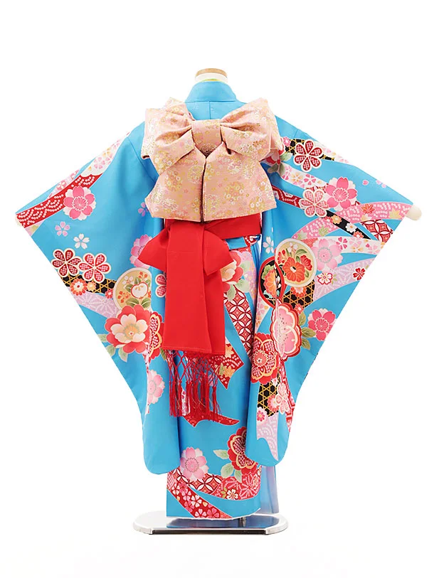 七五三(7歳結び帯)Y309 スカイブルー 熨斗に花