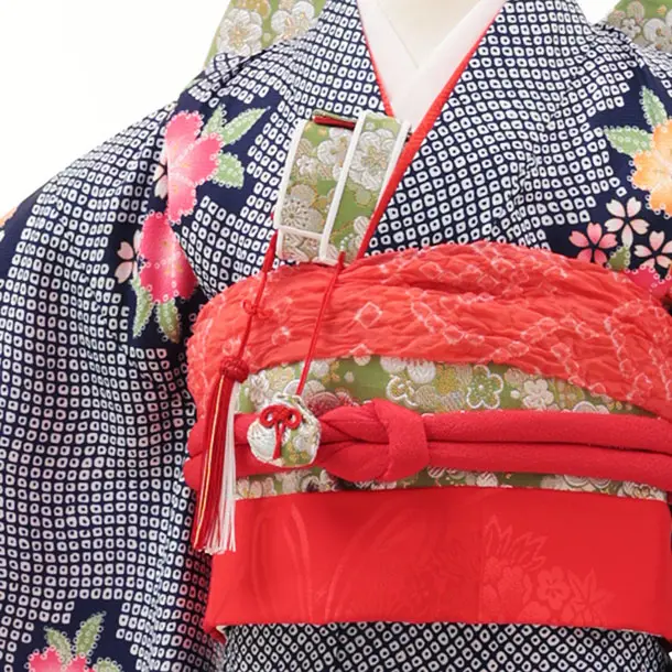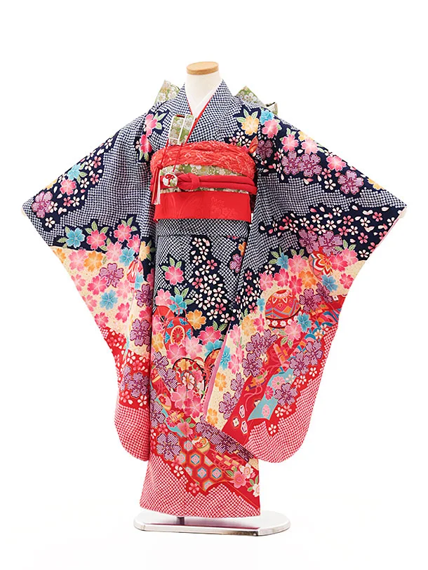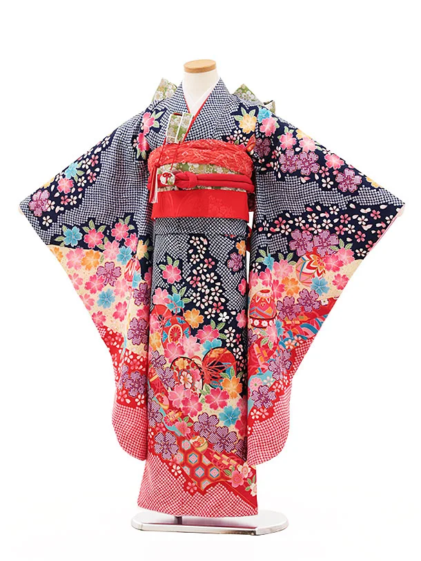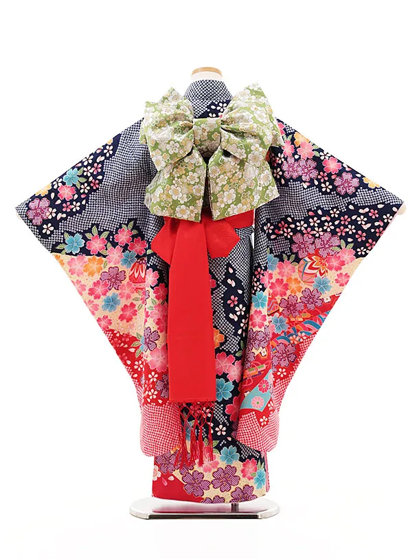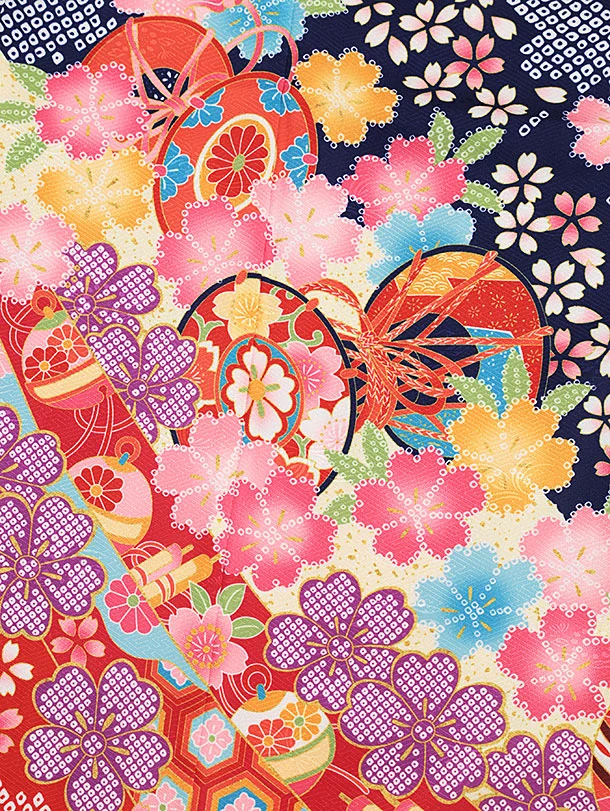 七五三(7歳結び帯)Y311 紺地 花鼓