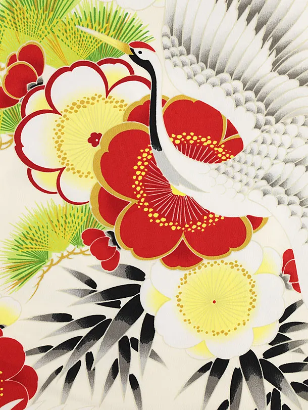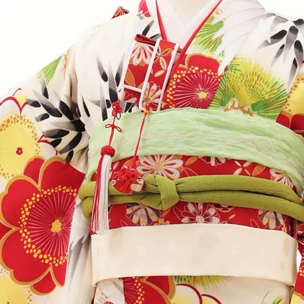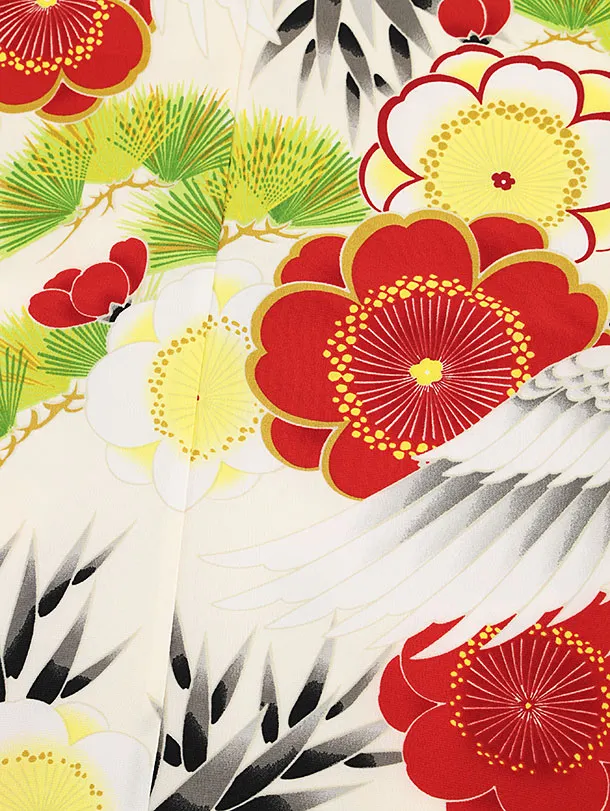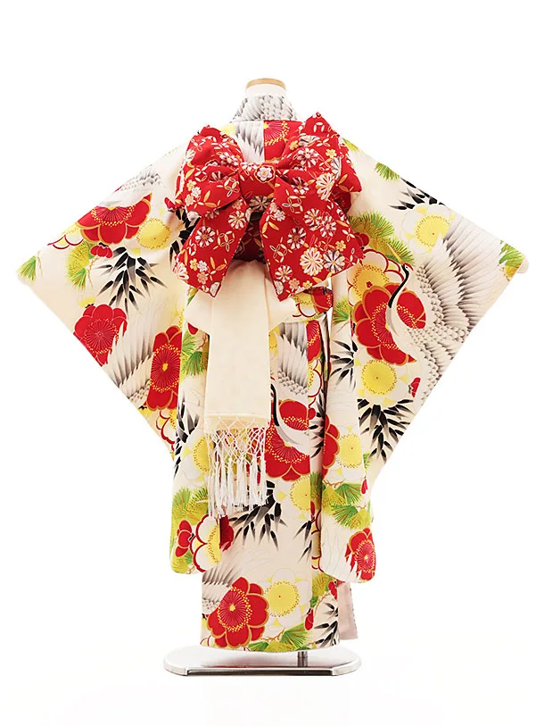 七五三(7歳結び帯)Y312 クリーム地 松竹梅に鶴