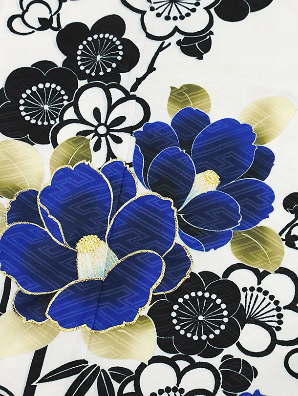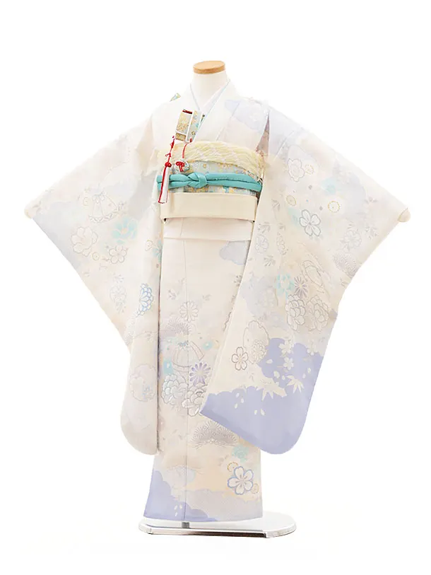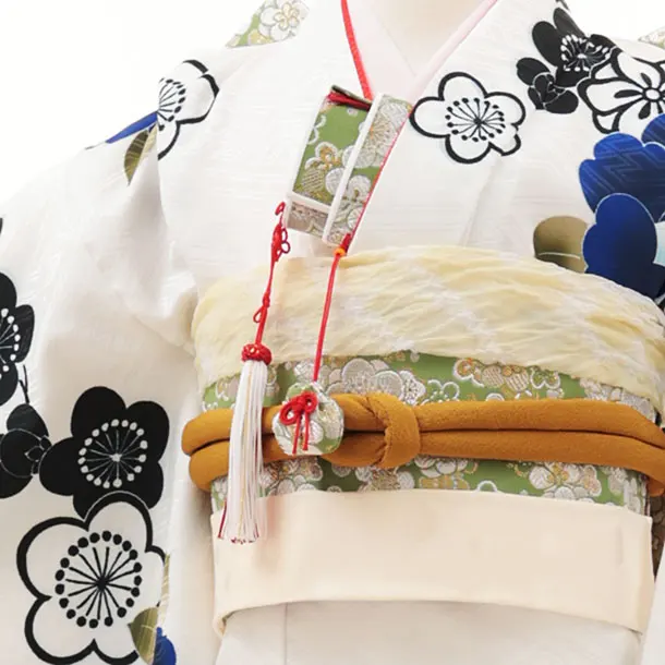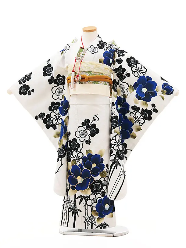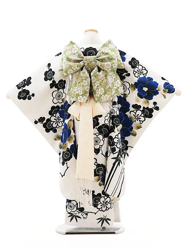 七五三(7歳結び帯)Y313 白地 梅竹 椿