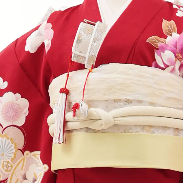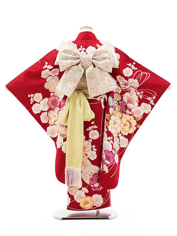 七五三(7歳結び帯)Y315 濃赤地 梅花づくし