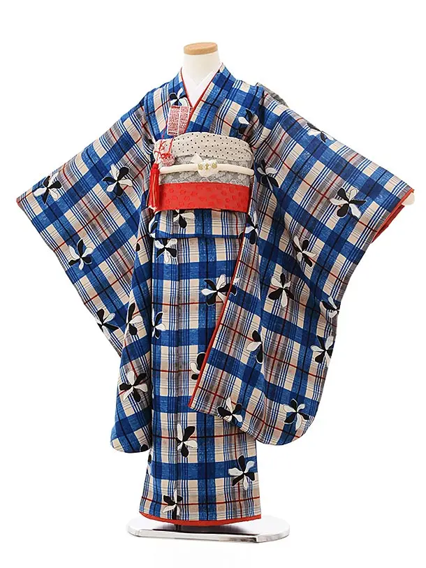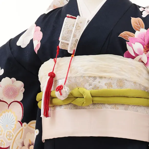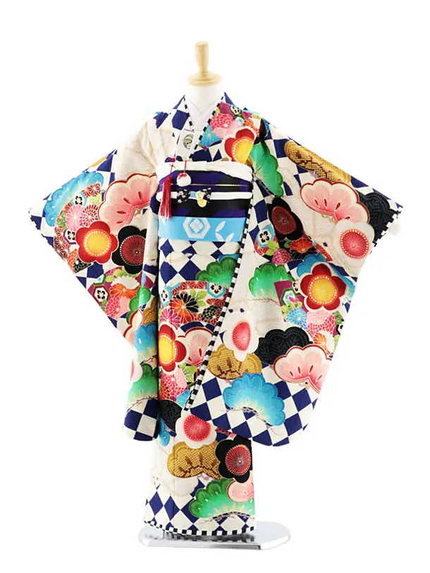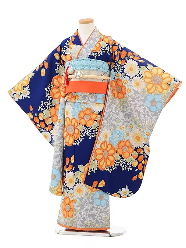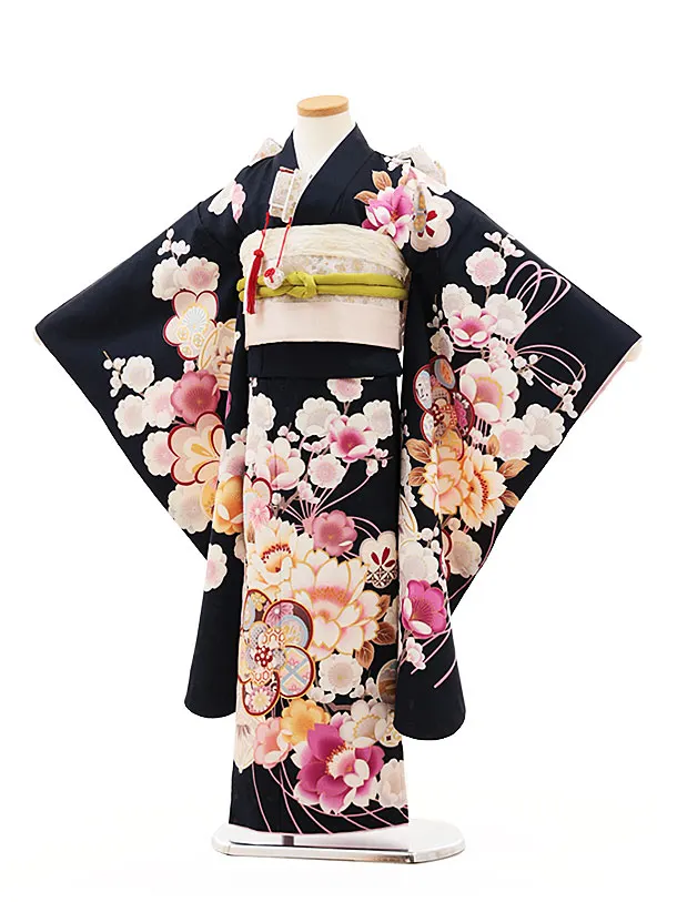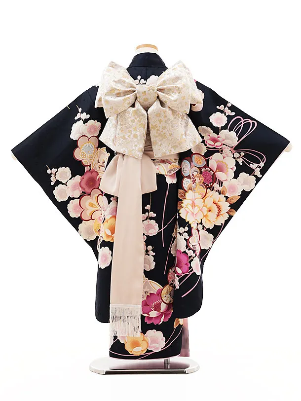 七五三(7歳結び帯)Y317 紺地 梅花づくし