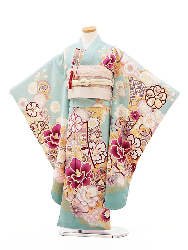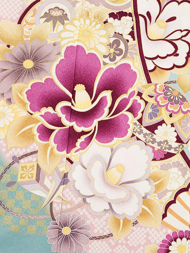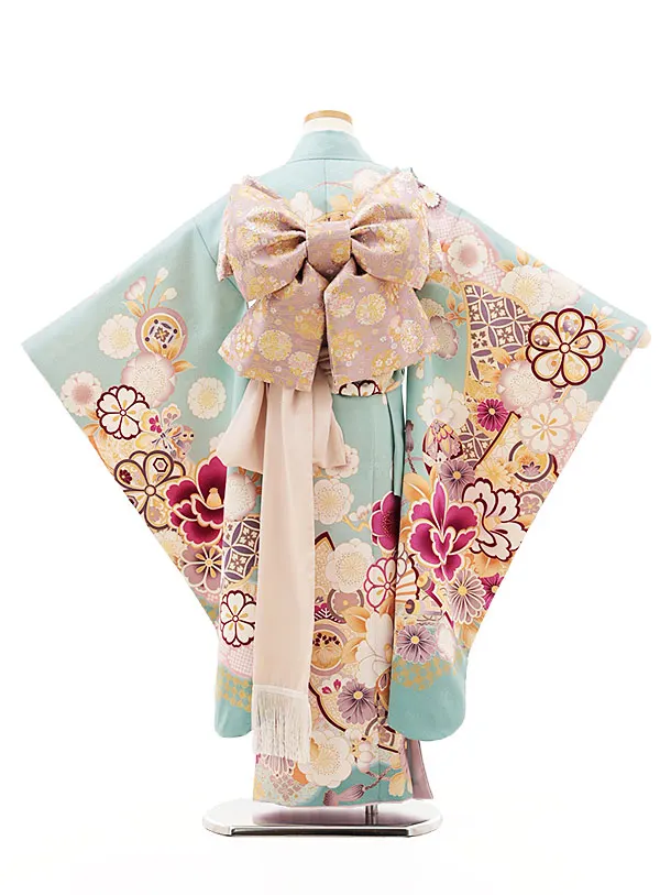 七五三(7歳結び帯)Y331 水色 椿花づくし