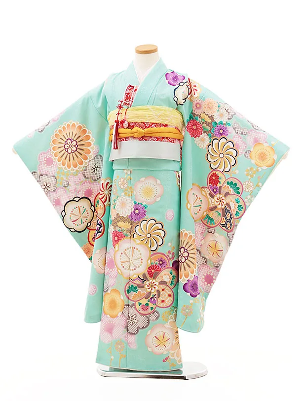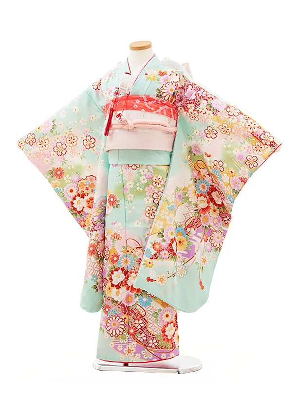 七五三(7歳結び帯)Y332 パステルグリーン ねじり梅菊