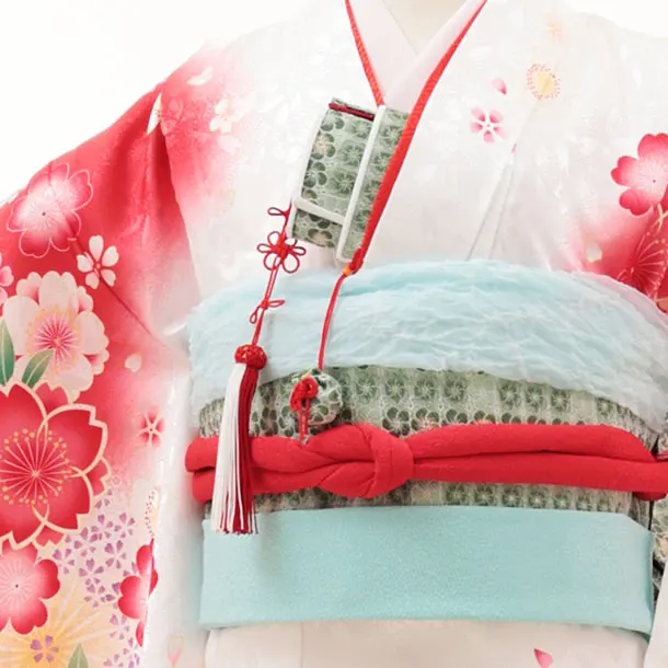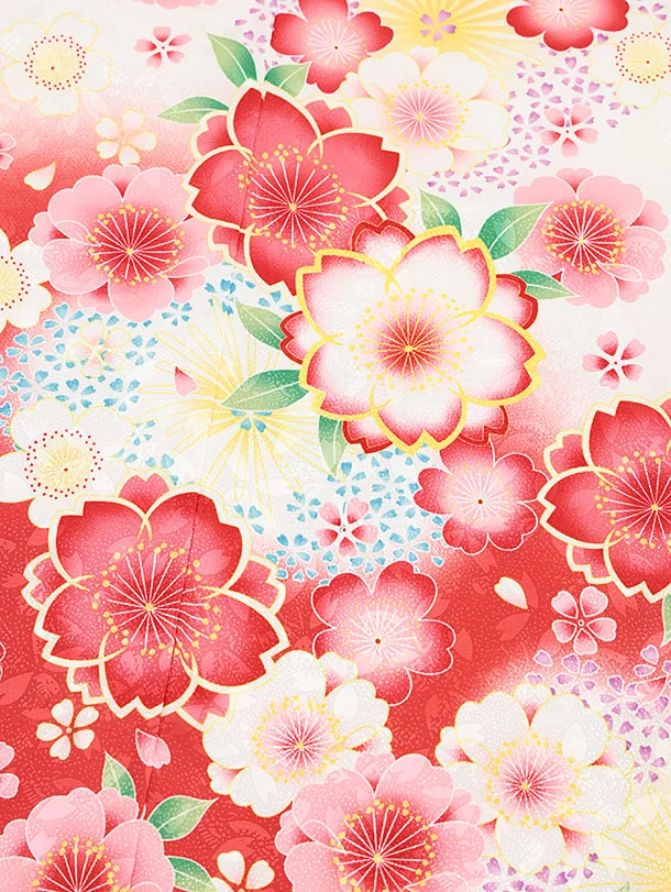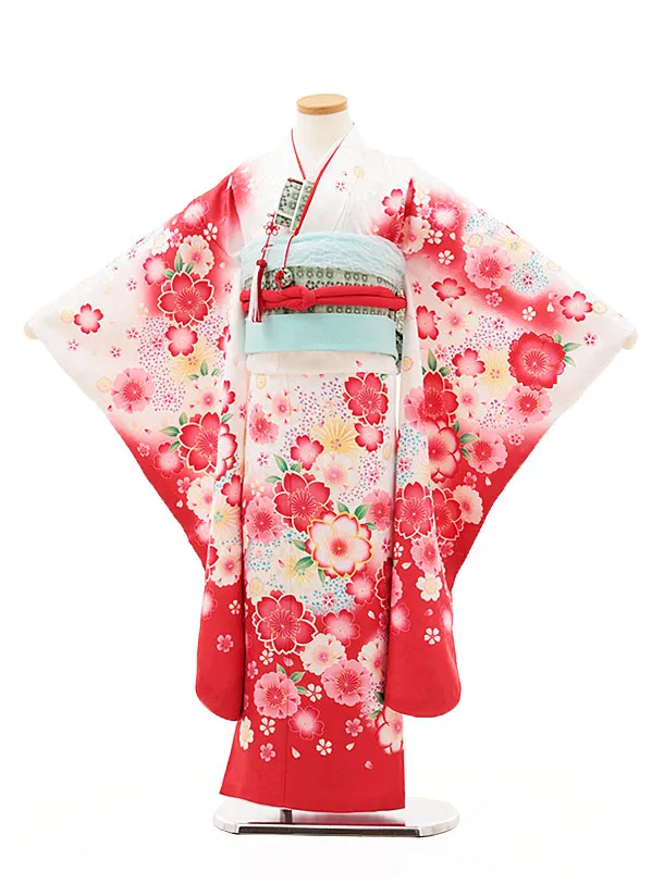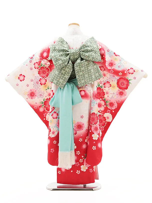 七五三(7歳結び帯)Y339 白赤 ぼかし 桜