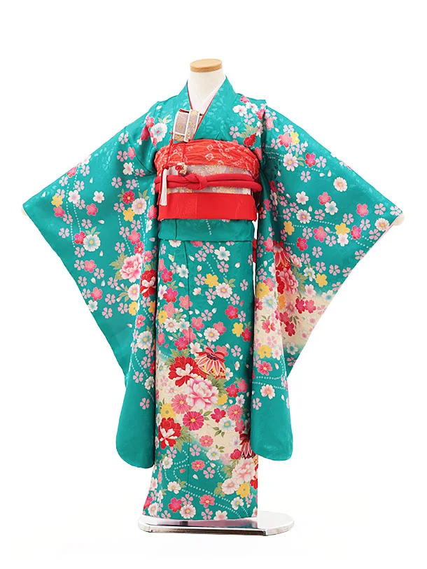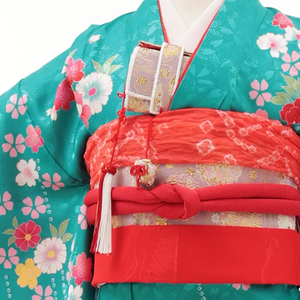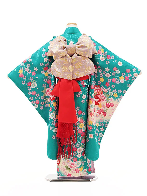 七五三(7歳結び帯)Y341 グリーン 鈴 花づくし
