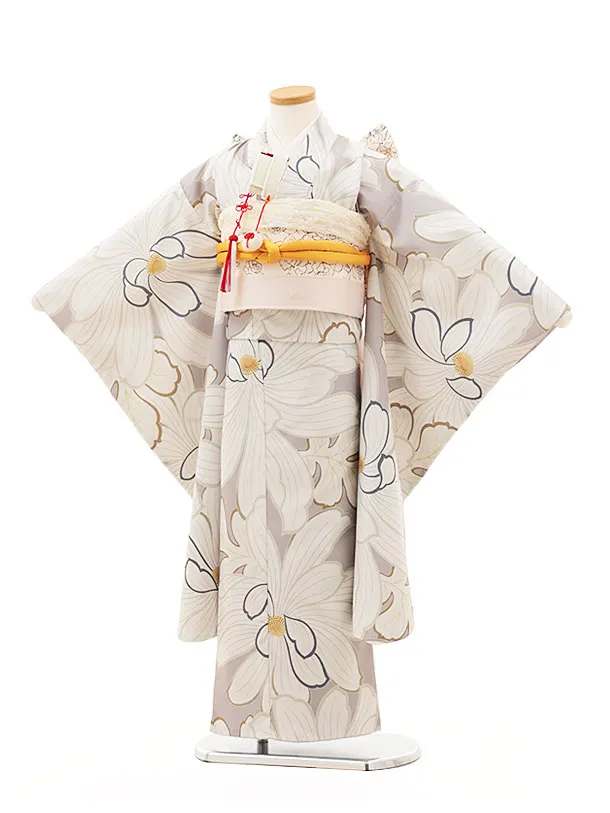 七五三(7歳結び帯)Y349 グレージュ 大きな花