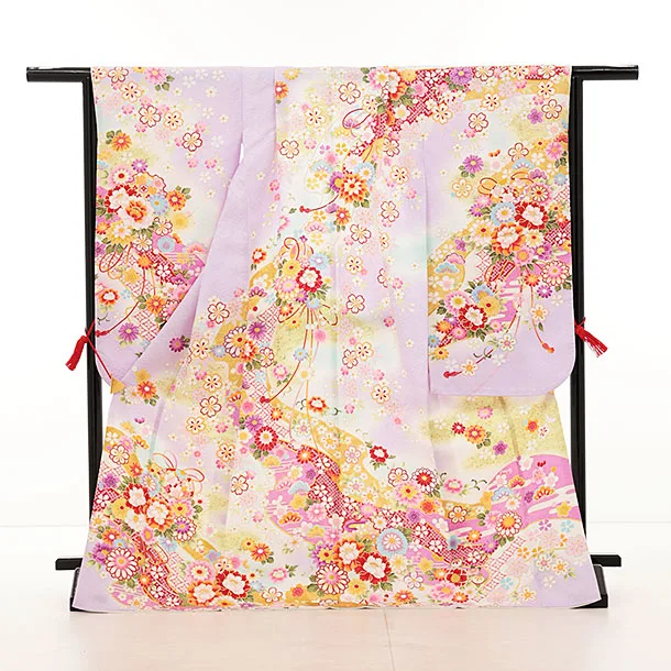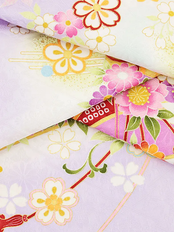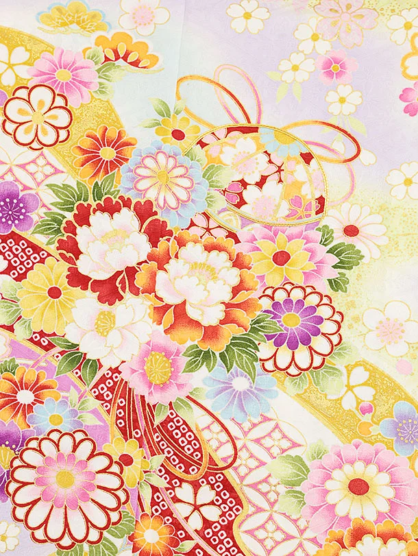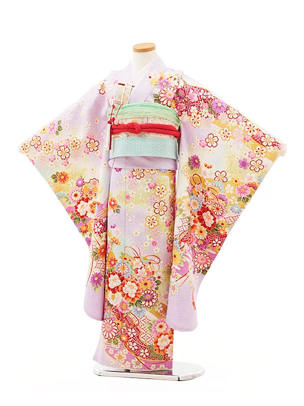 七五三(7歳結び帯)Y367【正絹】ラベンダー 鞠 薬玉