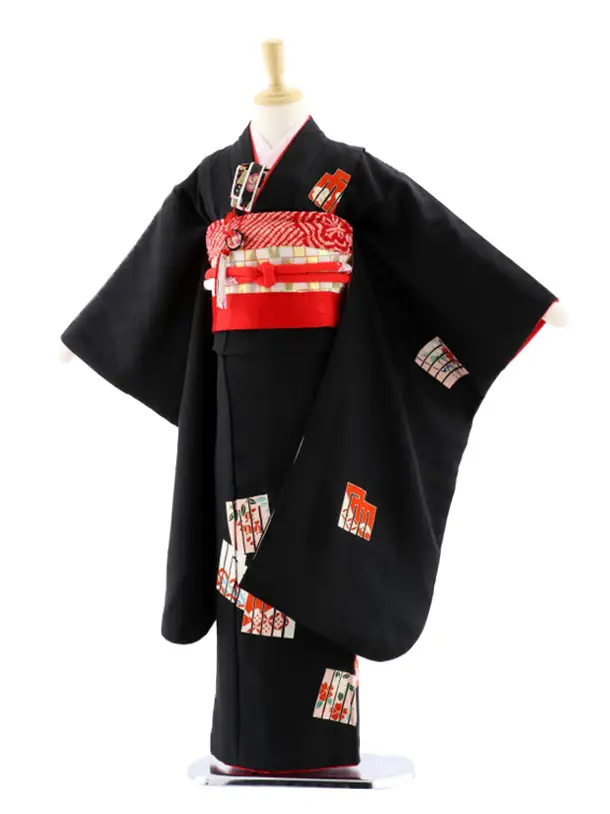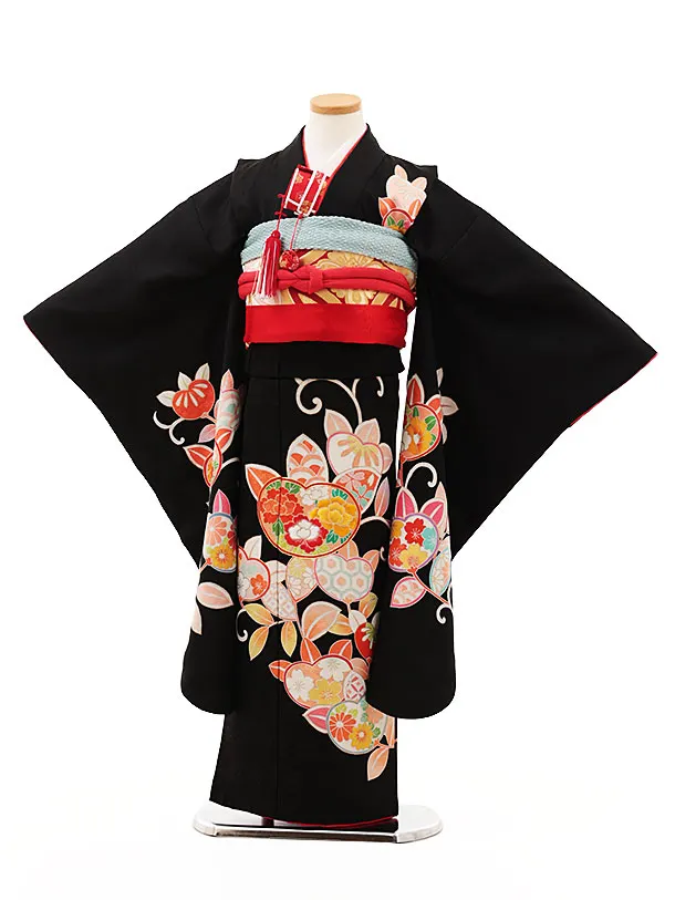 七五三(7歳袋帯)Y370【高級正絹】黒地 橘