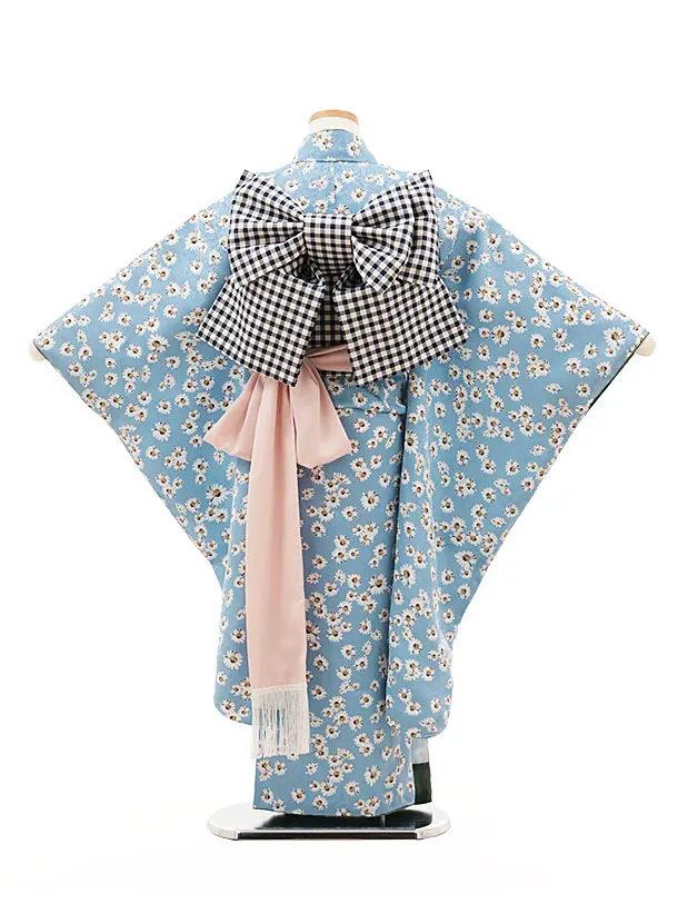 七五三(7歳結び帯)Y374 ラフィネココ 水色レトロヴィンテージ
