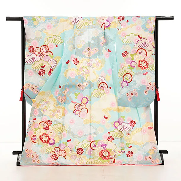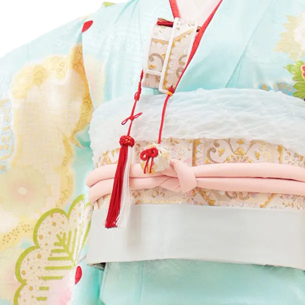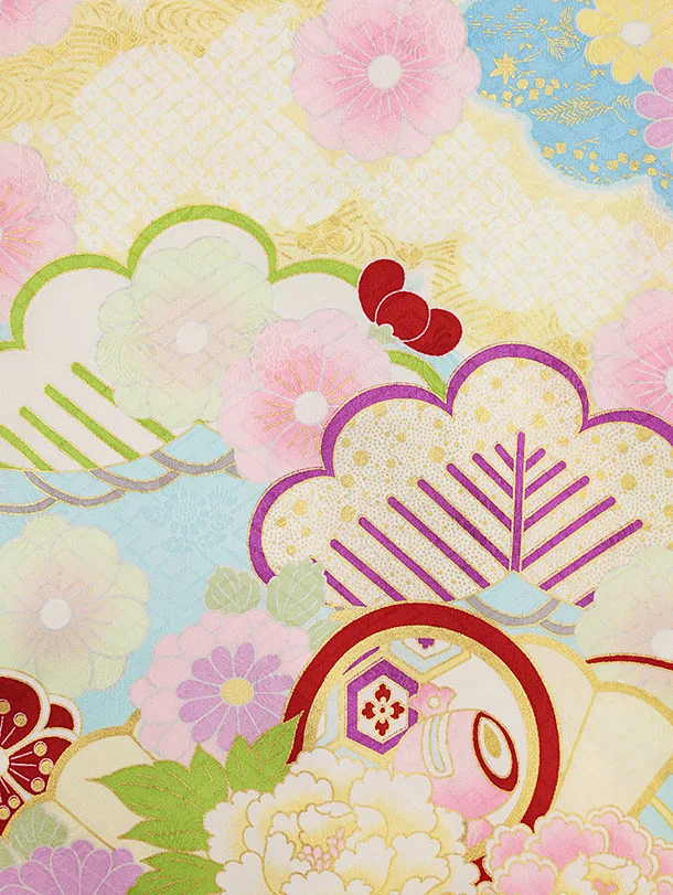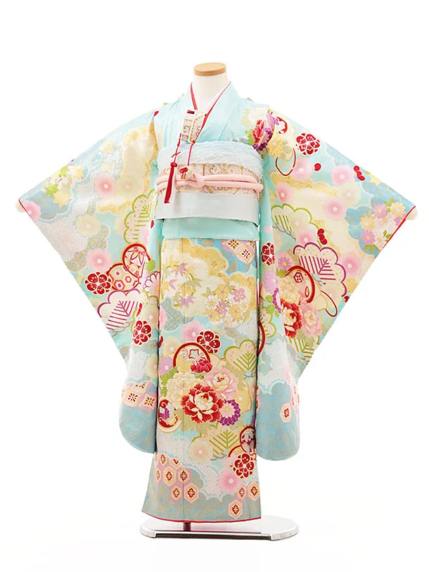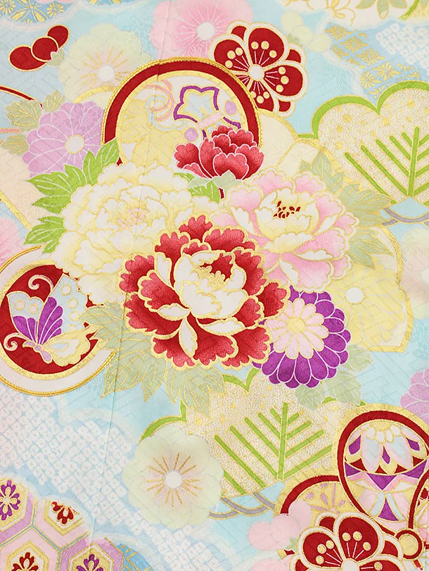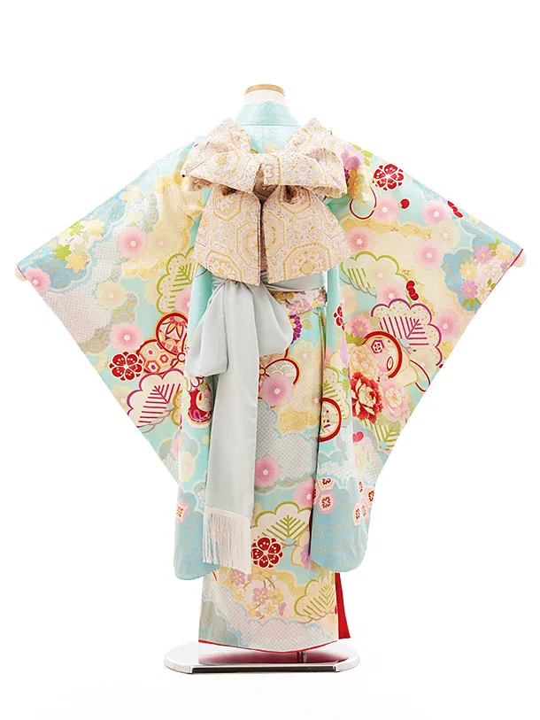 七五三(7歳結び帯)Y378【正絹】水色 丸紋 花づくし