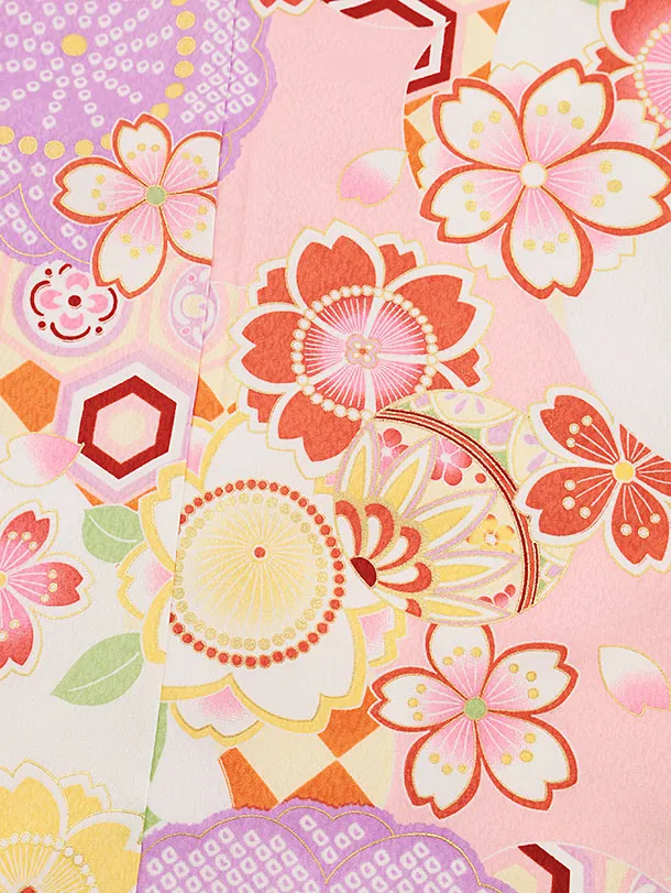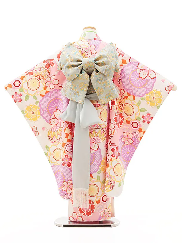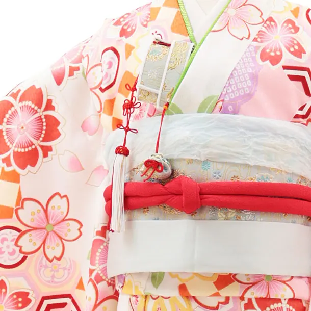 七五三(7歳結び帯)Y387 白 ピンク 桜