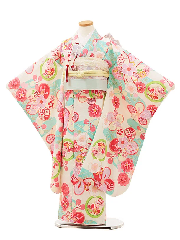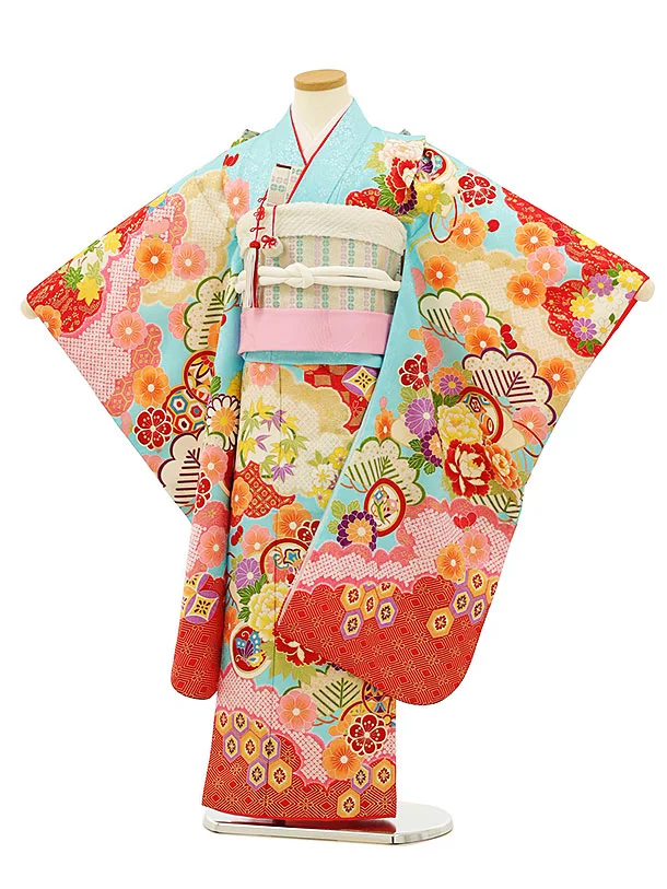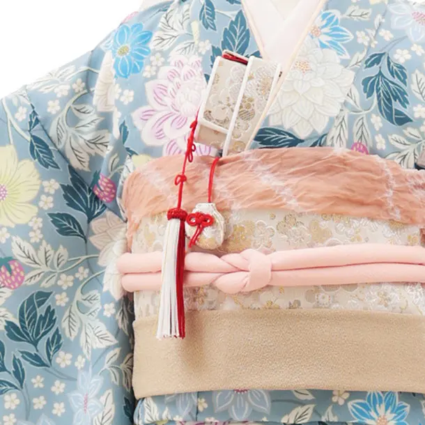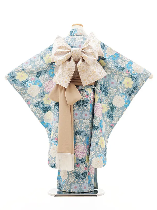 七五三(7歳結び帯)Y392 ブルーグレー花