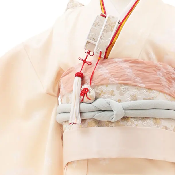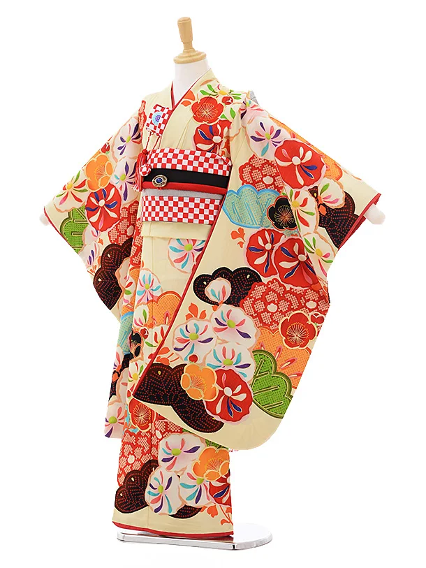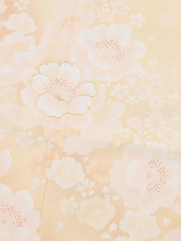 七五三(7歳結び帯)Y402 クリーム 花づくし