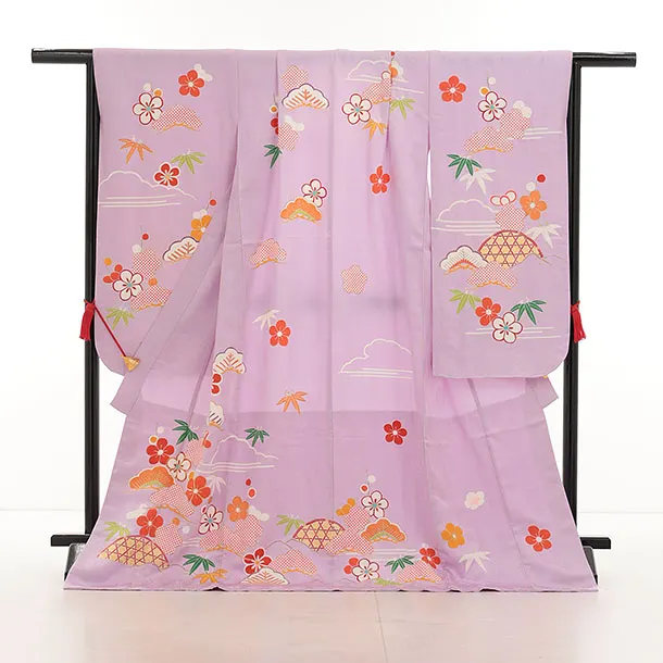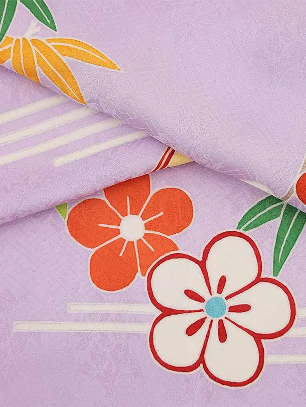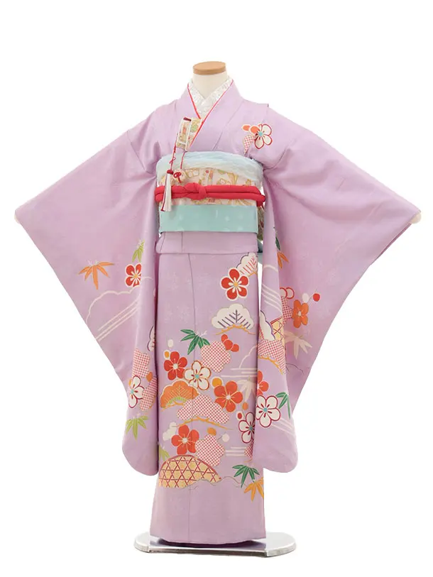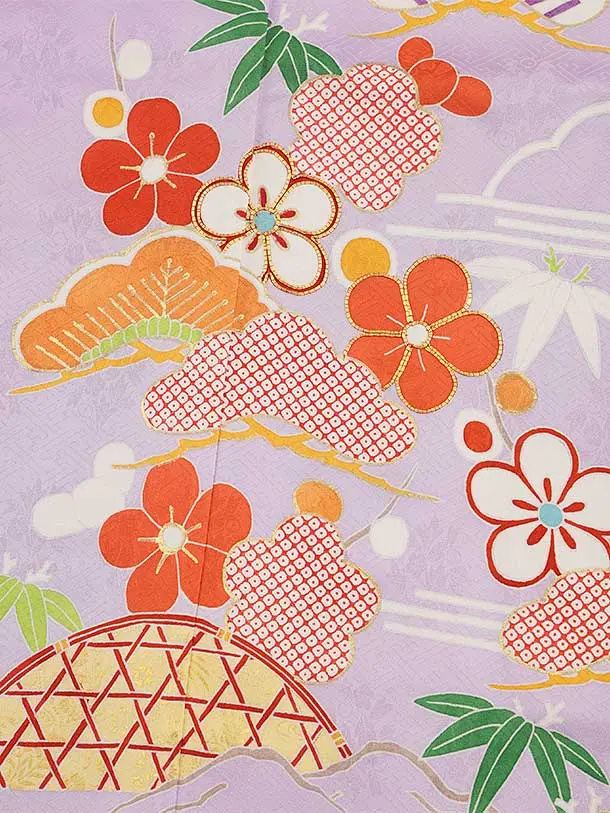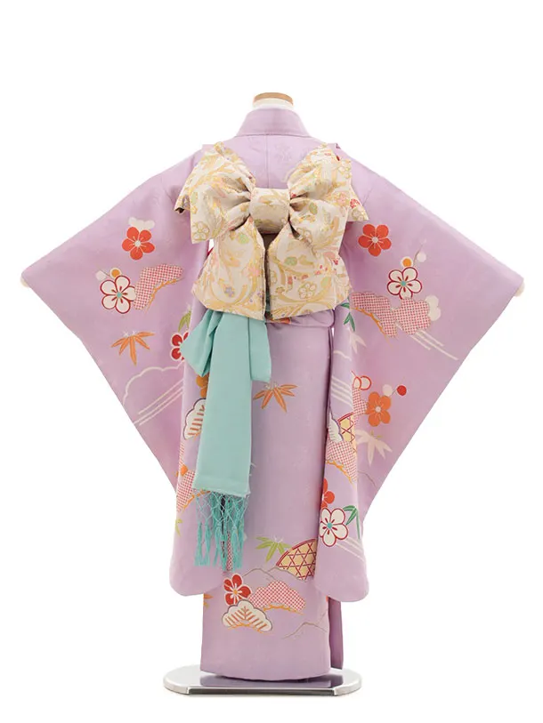 七五三(7歳結び帯)Y436【正絹】ラベンダー かごめに松竹梅