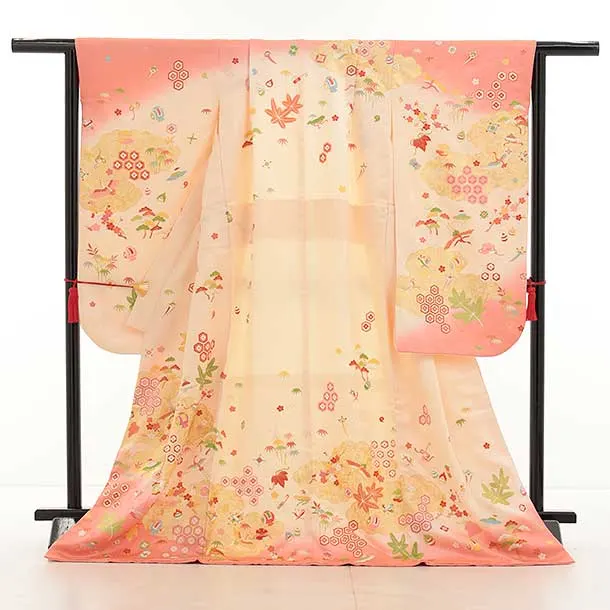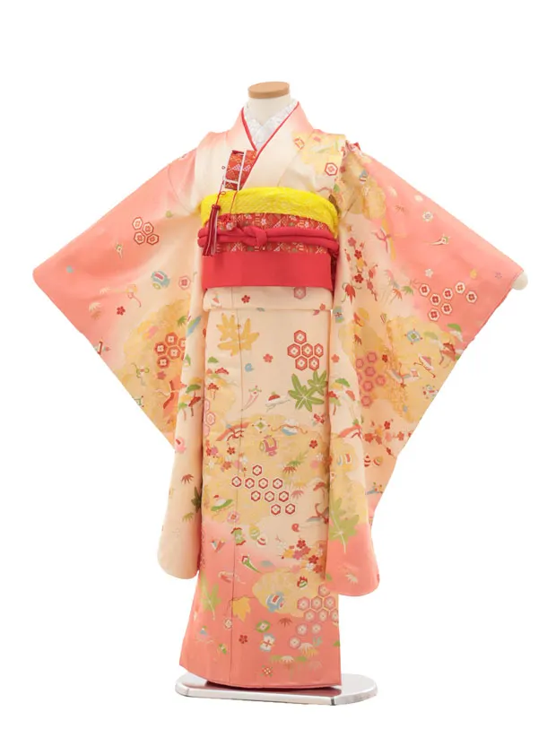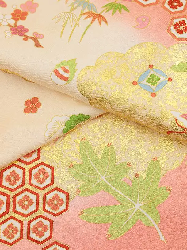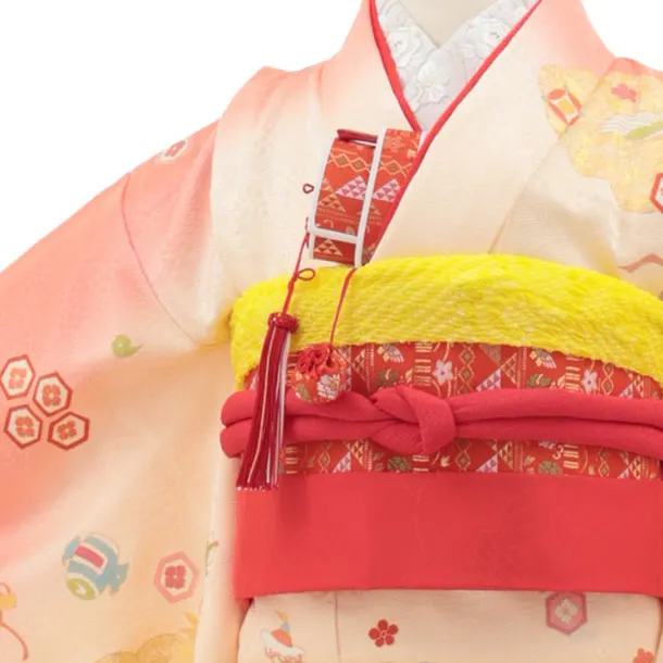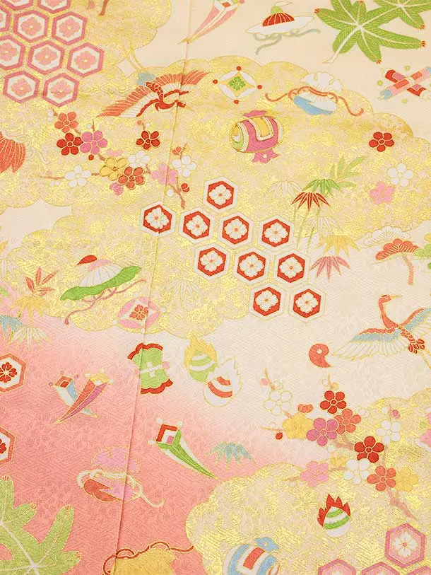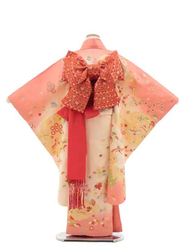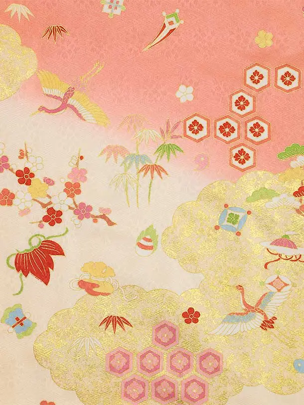 七五三(7歳結び帯)Y442【正絹】ピンクぼかし 金彩宝尽し