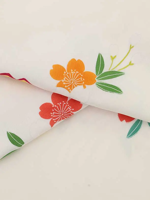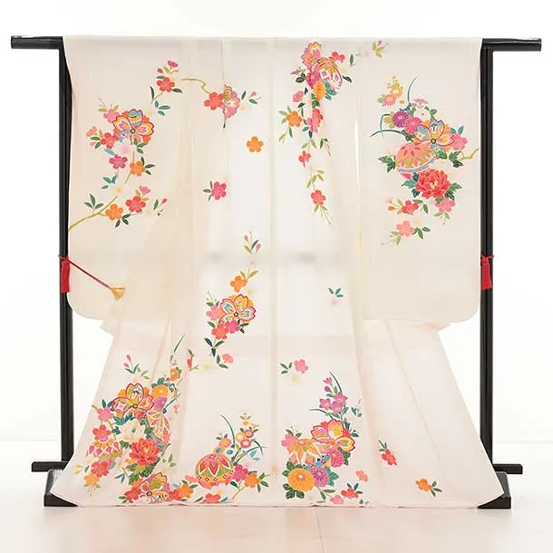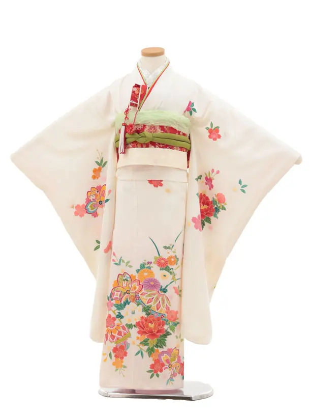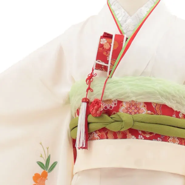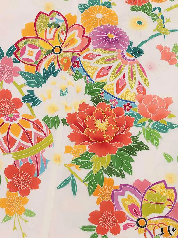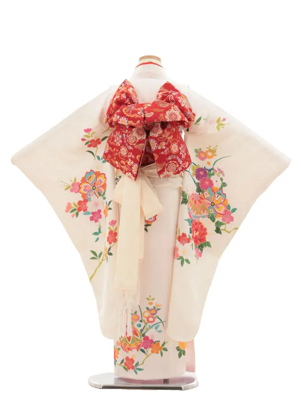 七五三(7歳結び帯)Y444【正絹】オフ白 鞠に桜牡丹