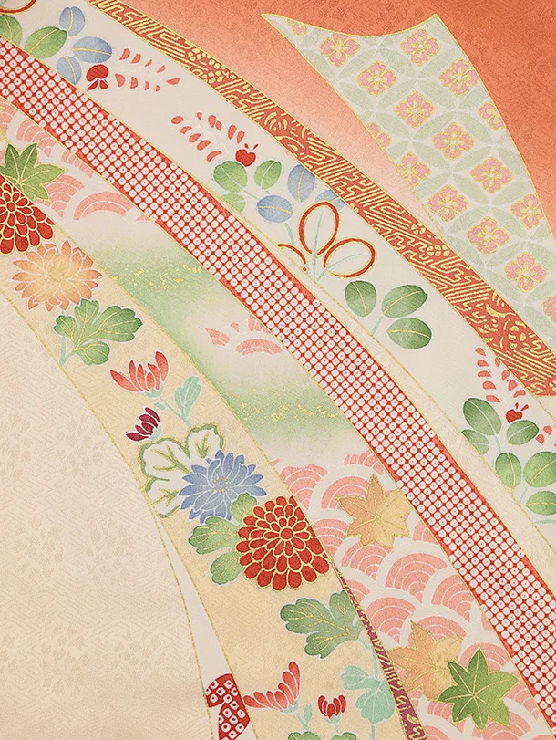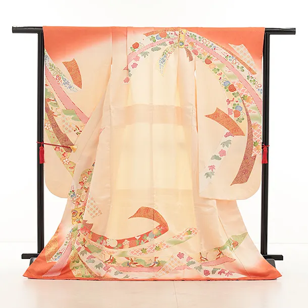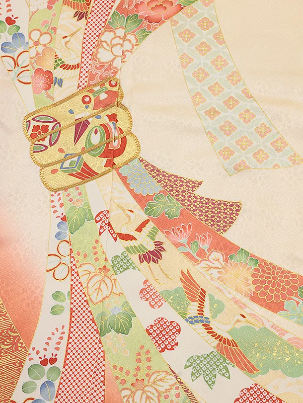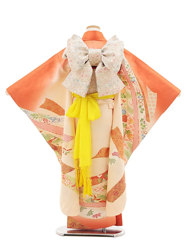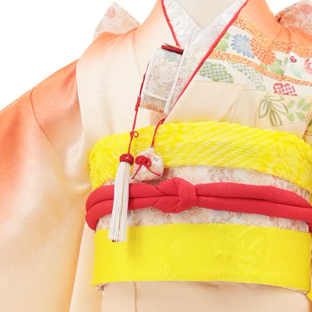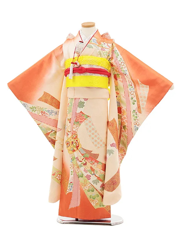 七五三(7歳結び帯)Y447【正絹】黄丹色ぼかし 束ね熨斗