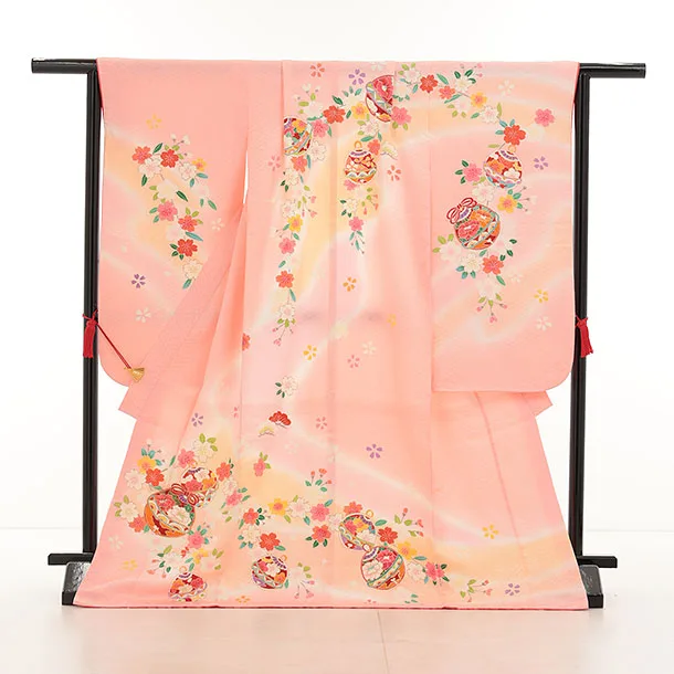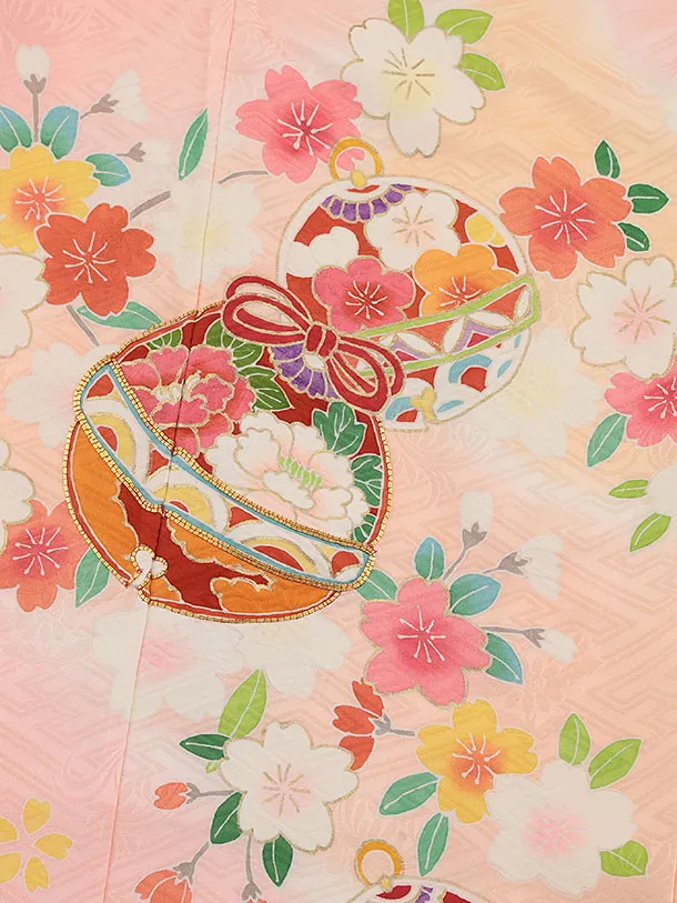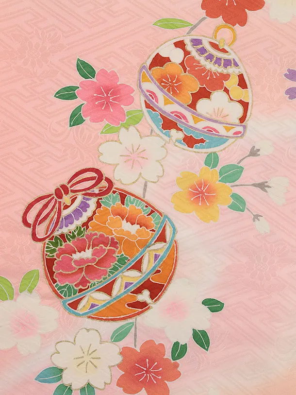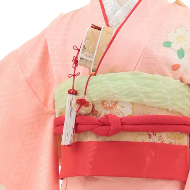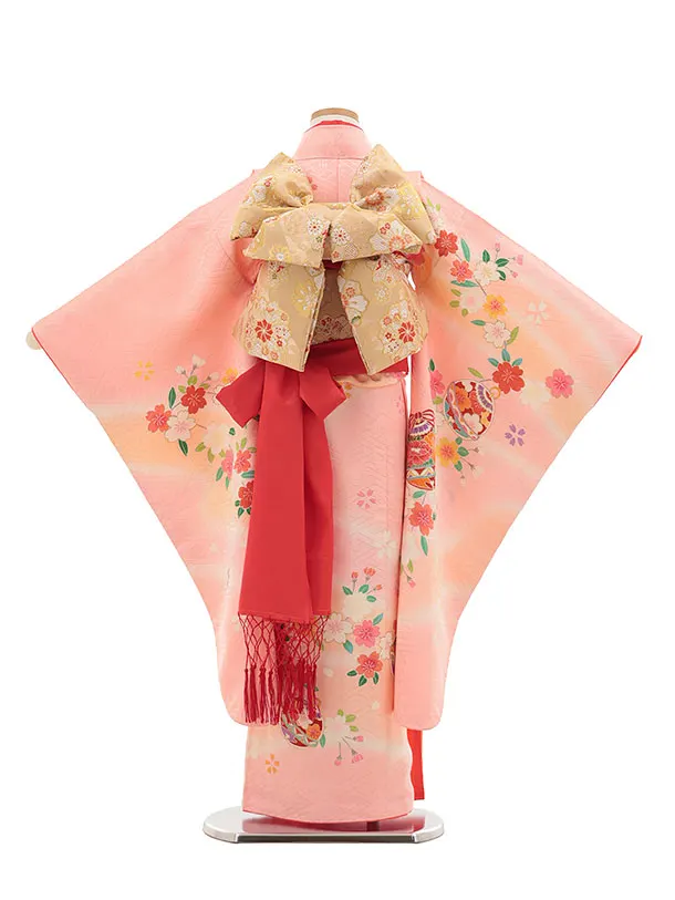 七五三(7歳結び帯)Y449【正絹】ピンク系 鈴に桜