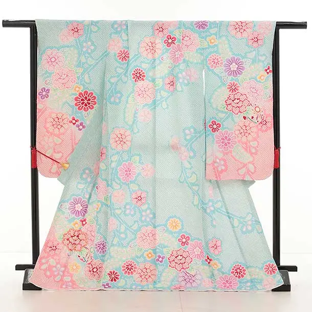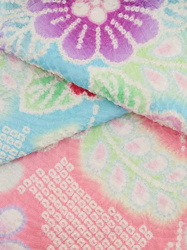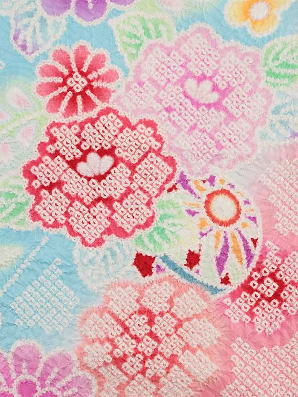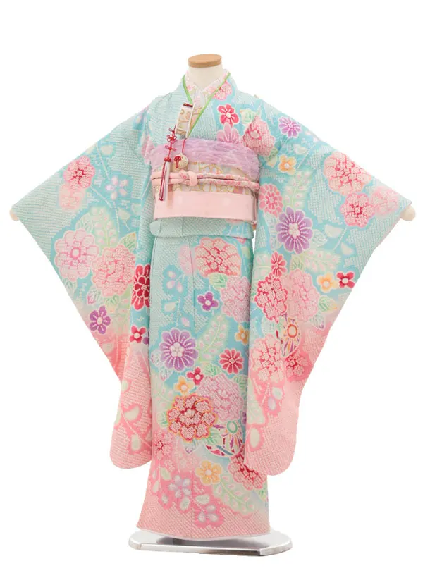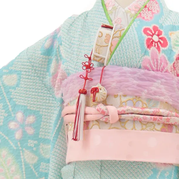 七五三(7歳結び帯)Y458【正絹】水色 絞り花