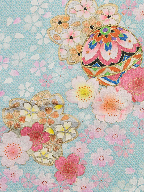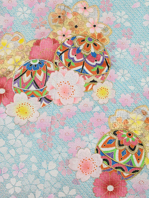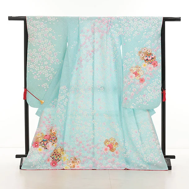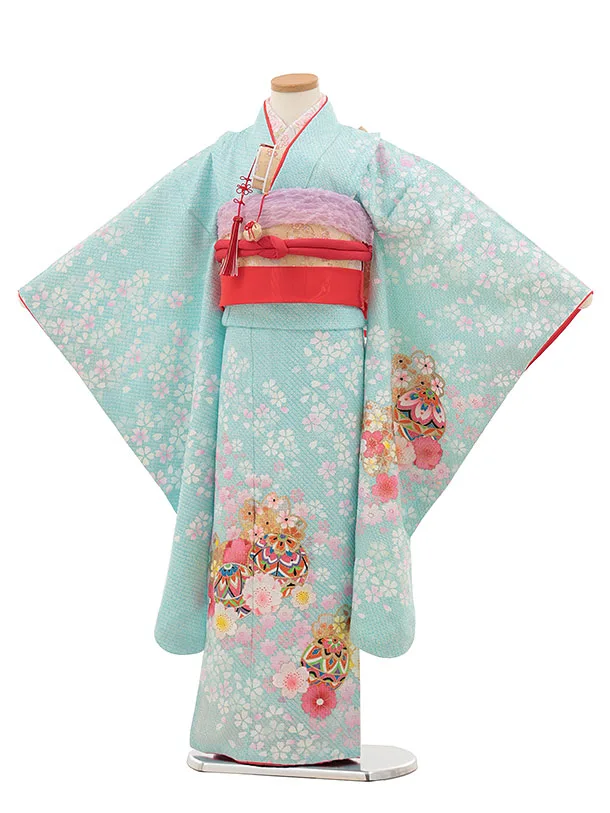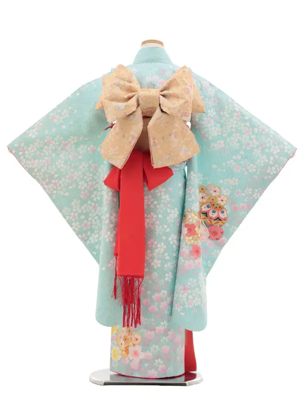 七五三(7歳結び帯)Y463【正絹】水色 鞠桜