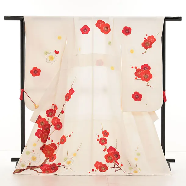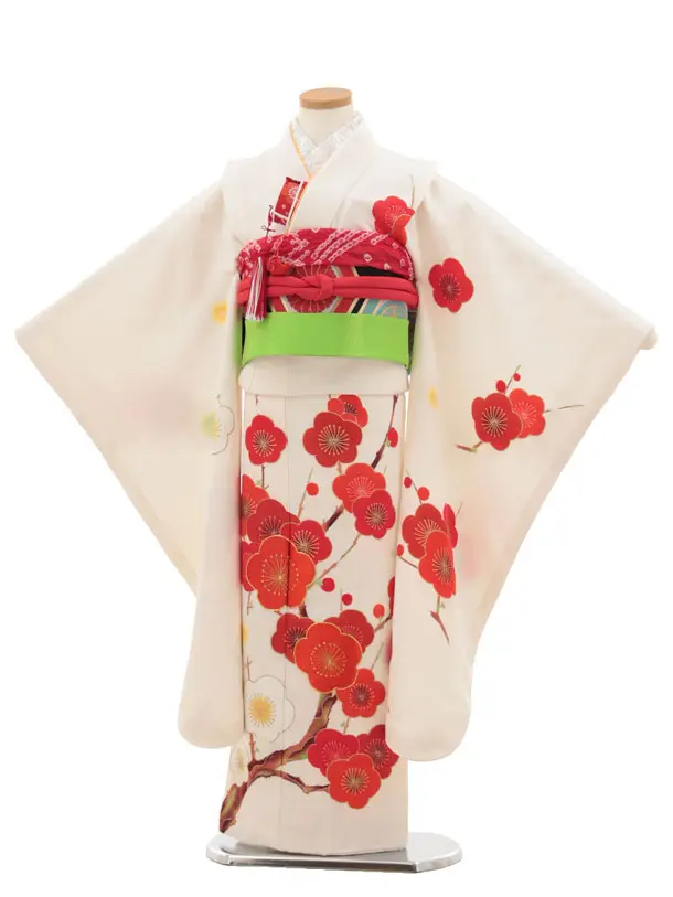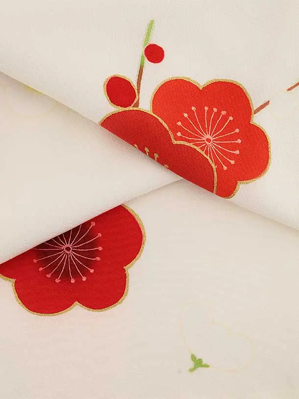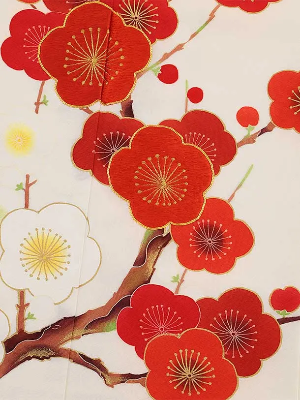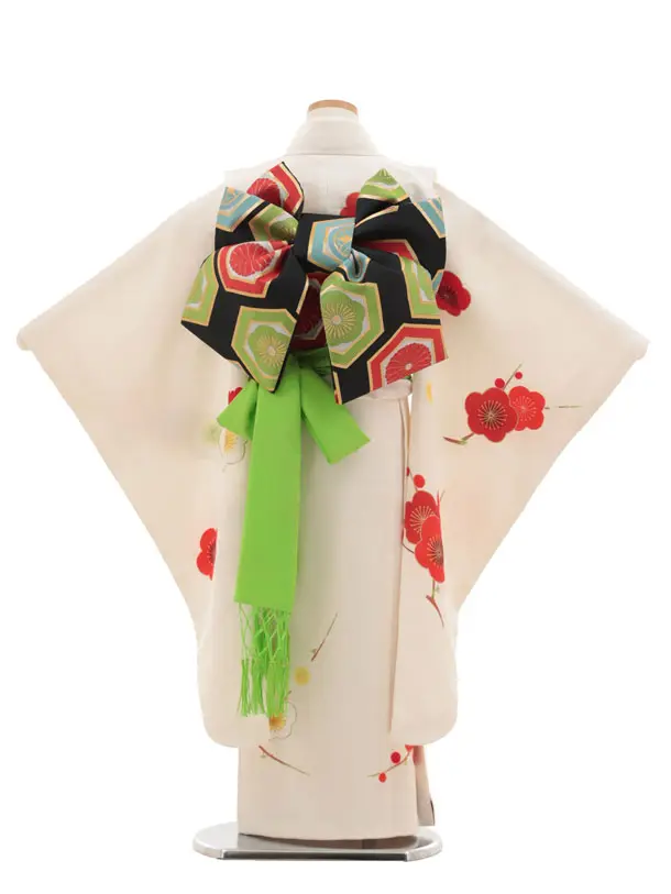 七五三(7歳結び帯)Y469【正絹】白地 梅