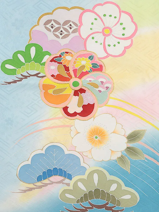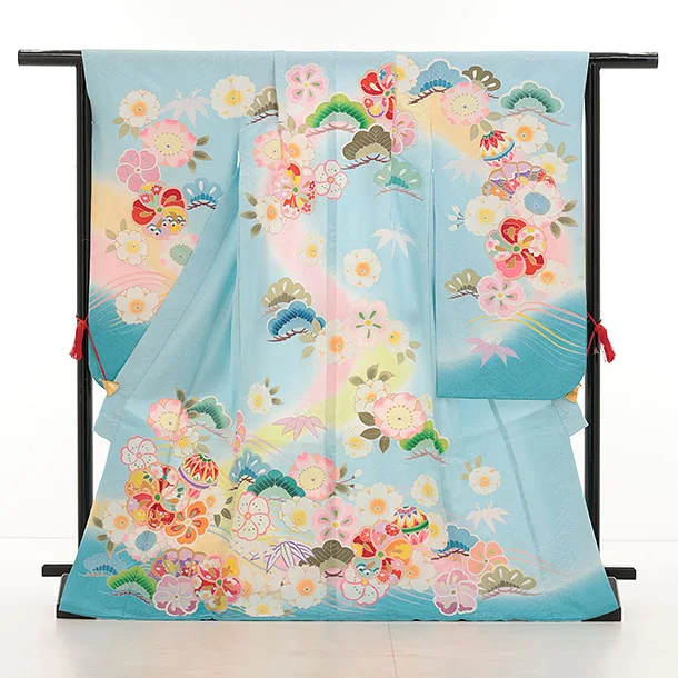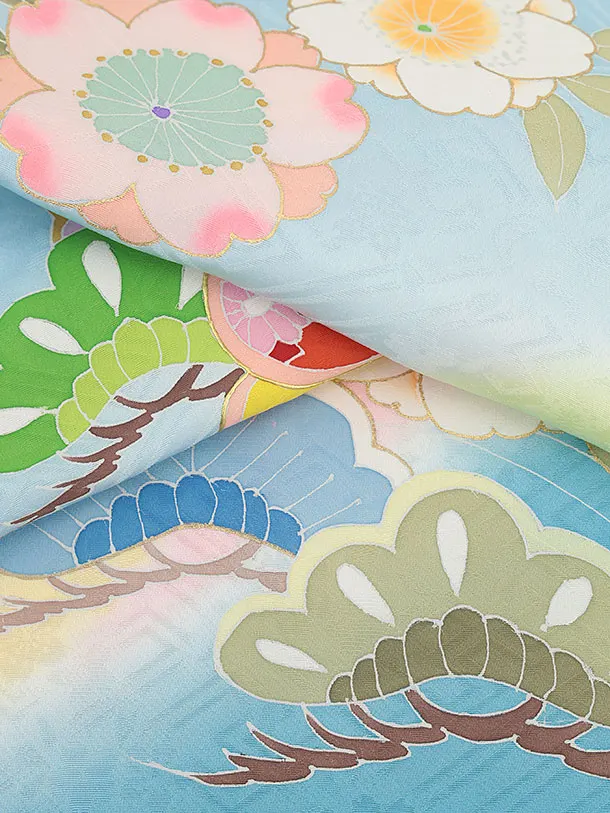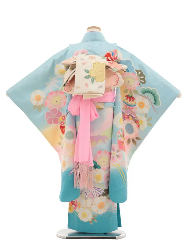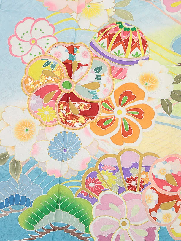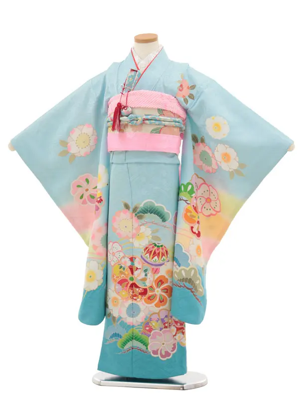 七五三(7歳袋帯)Y472【高級正絹】水色ぼかし 鞠花