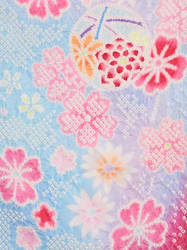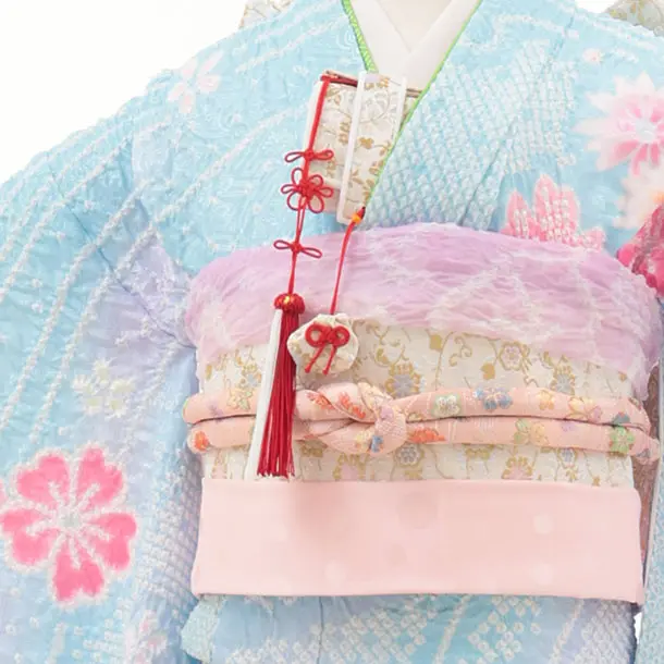 七五三(7歳結び帯)Y485 水色ぼかし 鞠桜