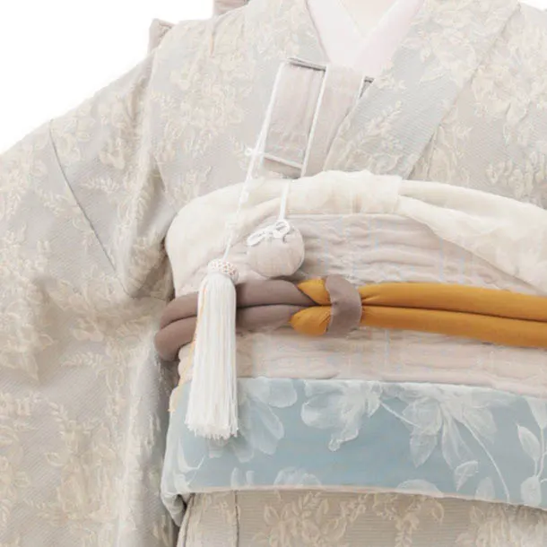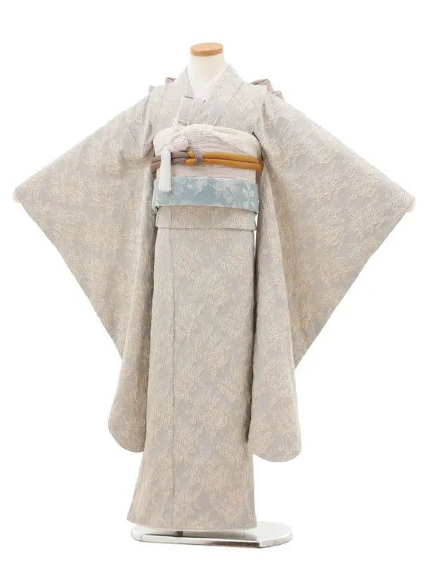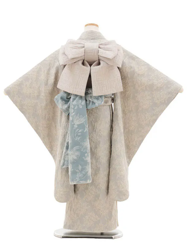 七五三(7歳結び帯)Y500 ぷちぷり ブルーベージュ ジャガード バラ