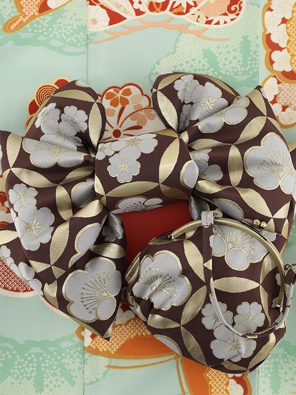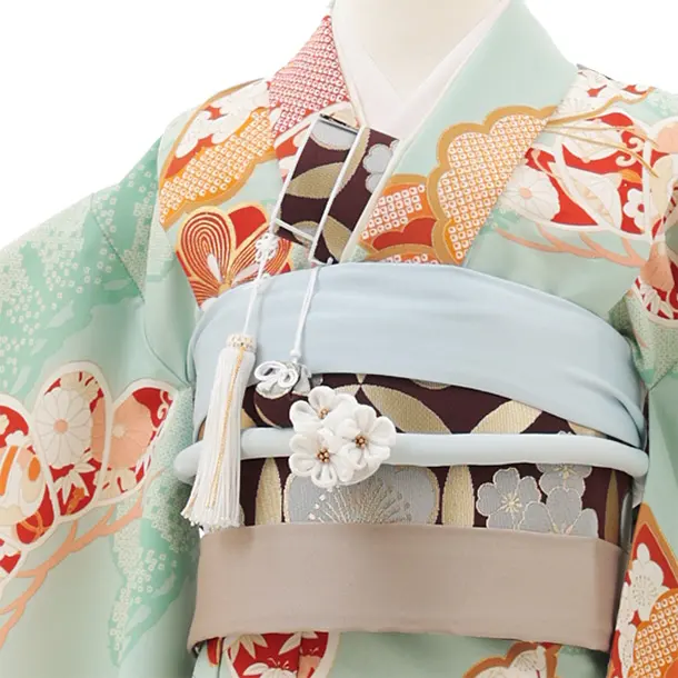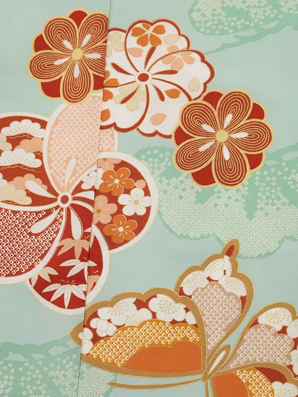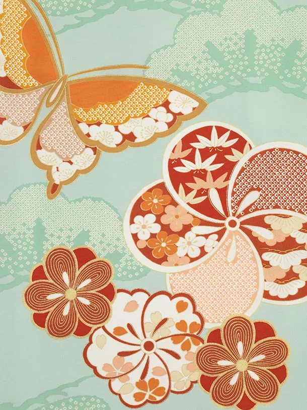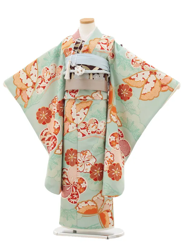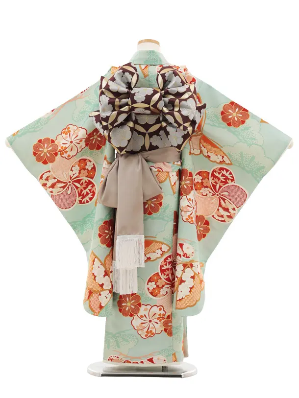 七五三(7歳結び帯)Y502 ぷちぷり ペールグリーン 蝶にねじり梅
