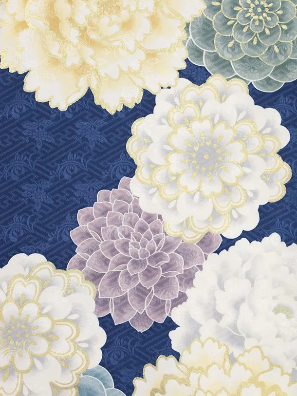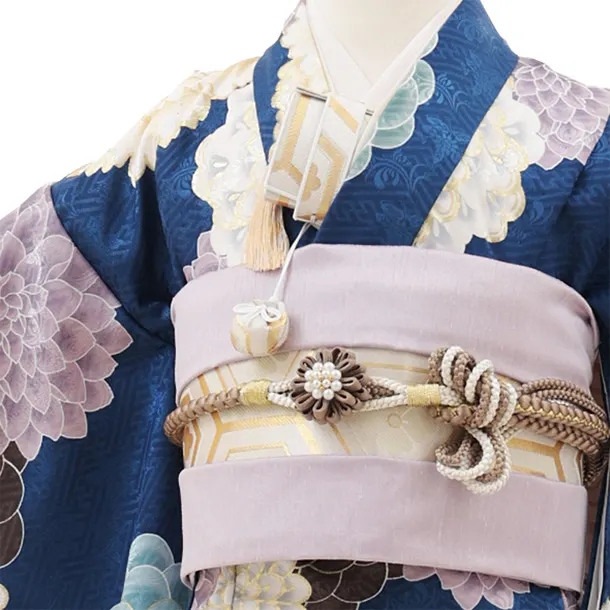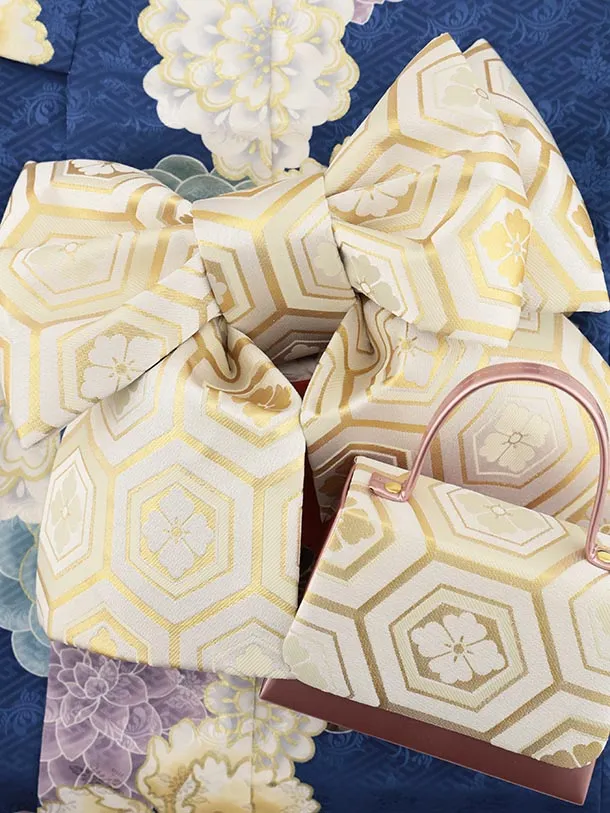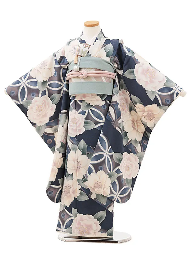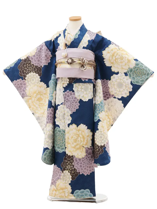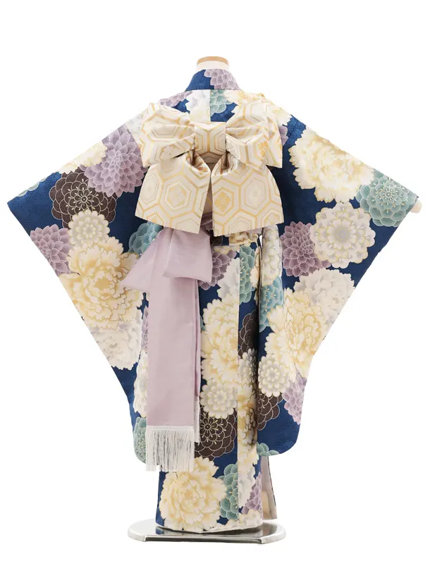 七五三(7歳結び帯)Y505 花わらべ 紺 古典花