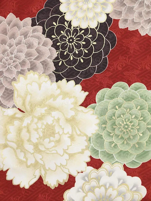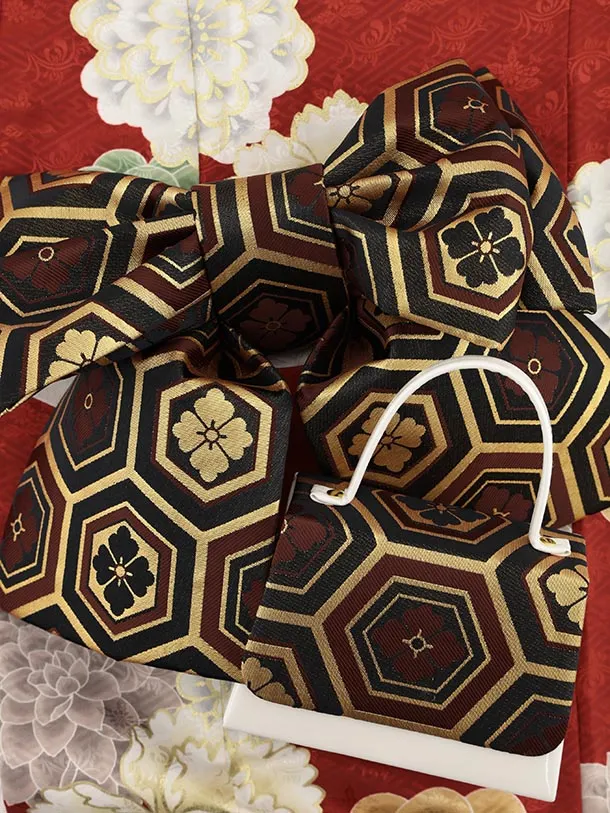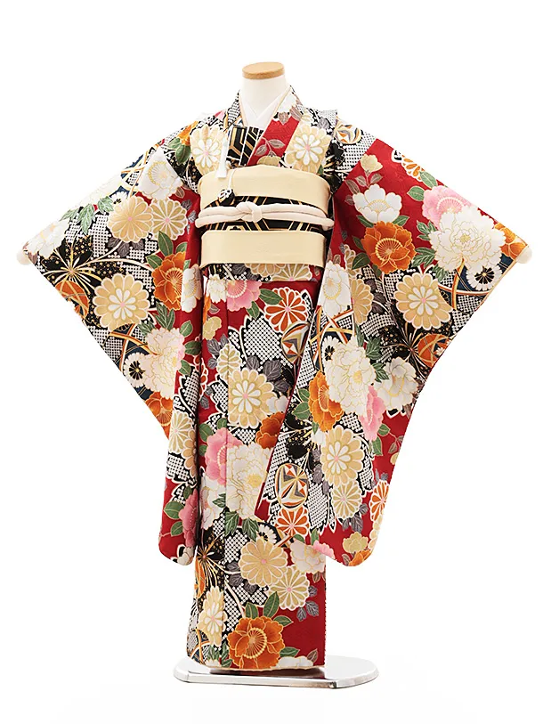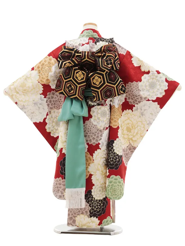 七五三(7歳結び帯)Y506 花わらべ 赤茶 古典花