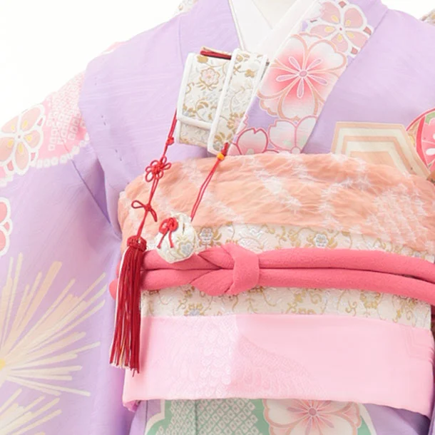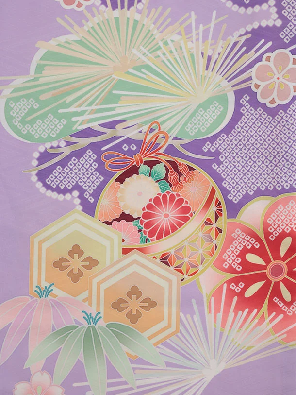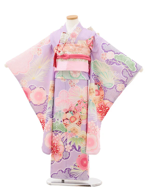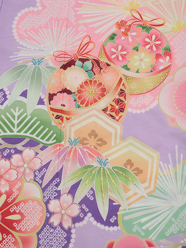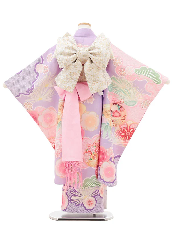 七五三(7歳結び帯)Y526 ラベンダー 鞠に松竹梅