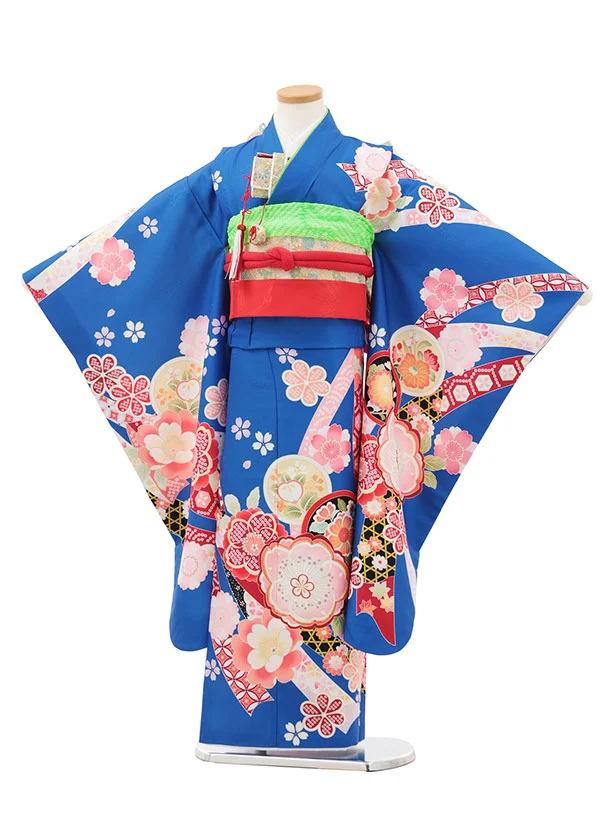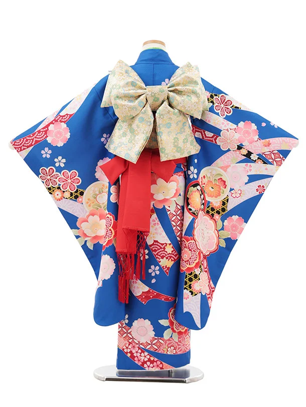 七五三(7歳結び帯)Y529 ブルー地 熨斗に花