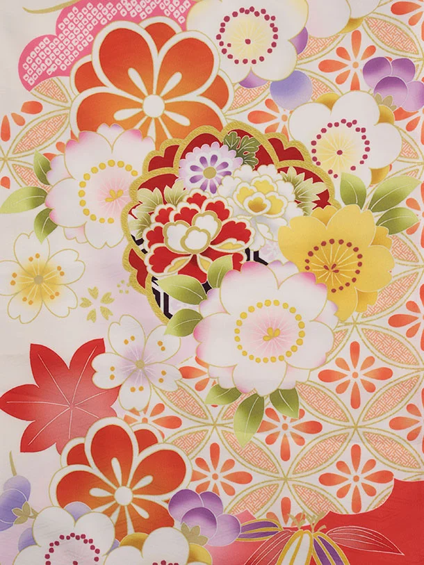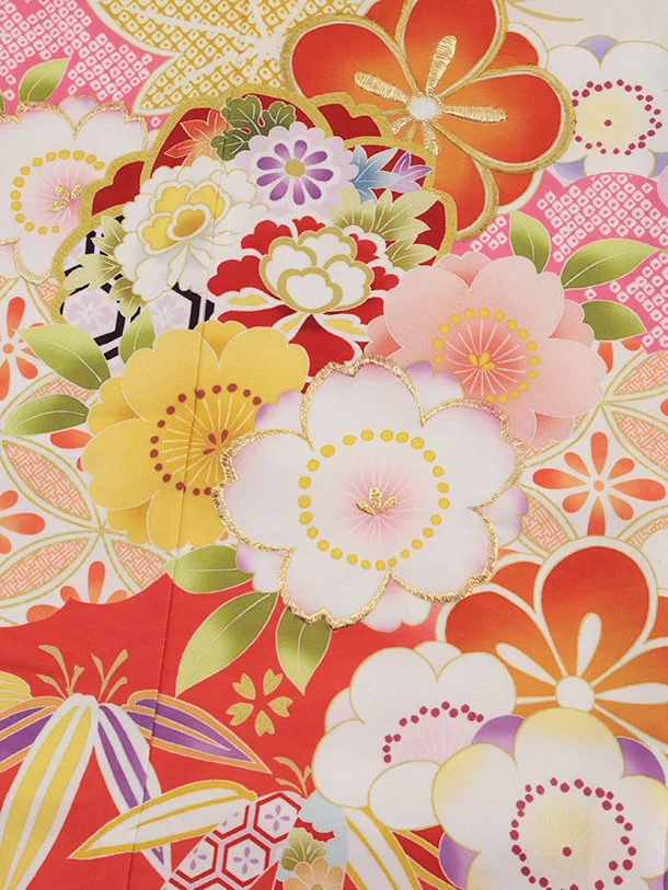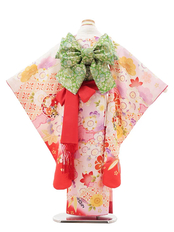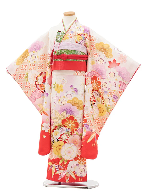 七五三(7歳結び帯)Y541 式部浪漫 オフ白 裾赤花づくし