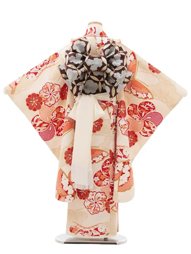 七五三(7歳結び帯)Y549 ぷちぷり クリーム ねじり梅
