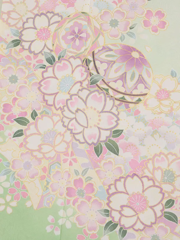 七五三(7歳結び帯)Y551 ペールグリーン 桜鞠