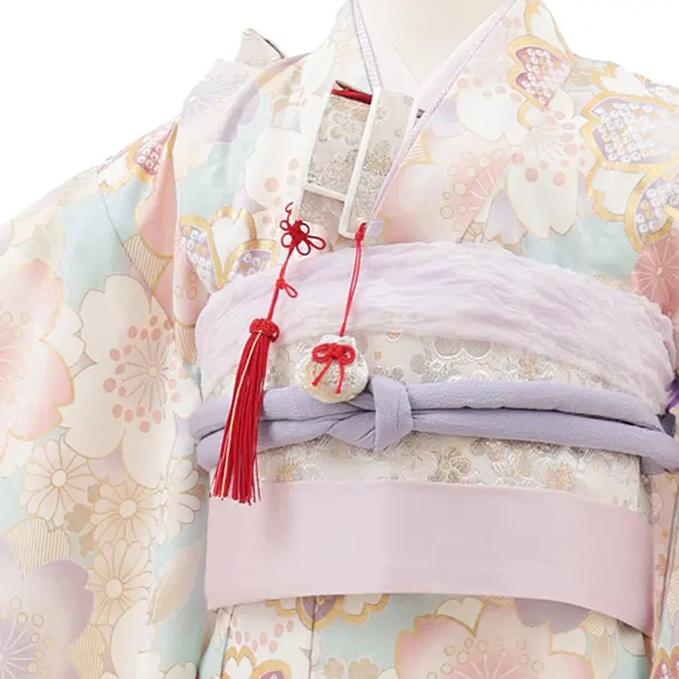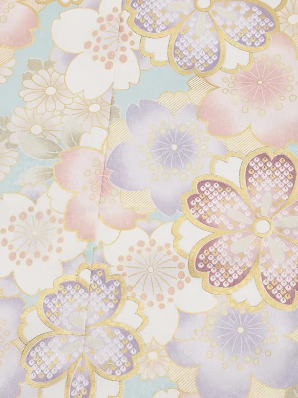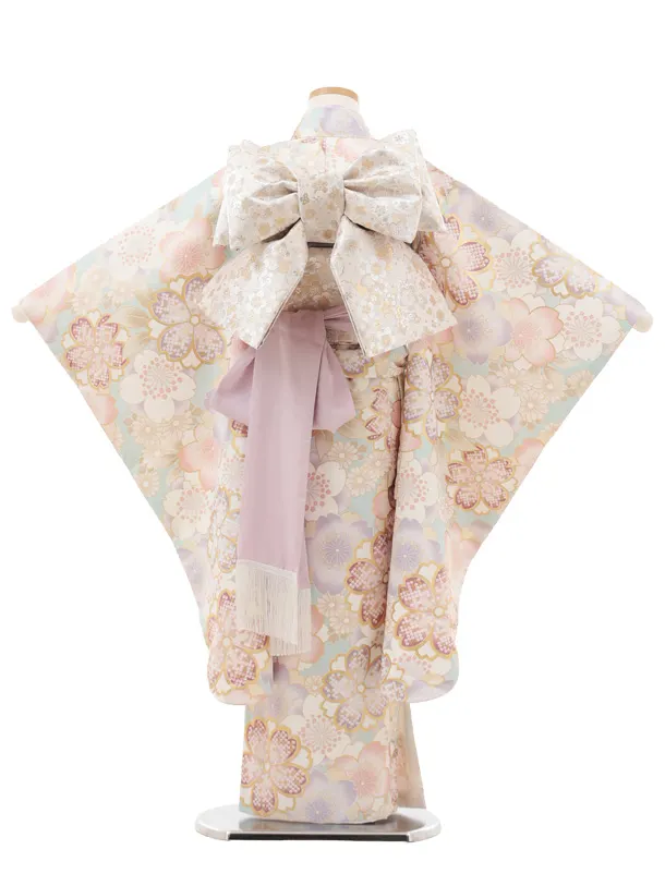 七五三(7歳結び帯)Y558 ペールブルー 桜